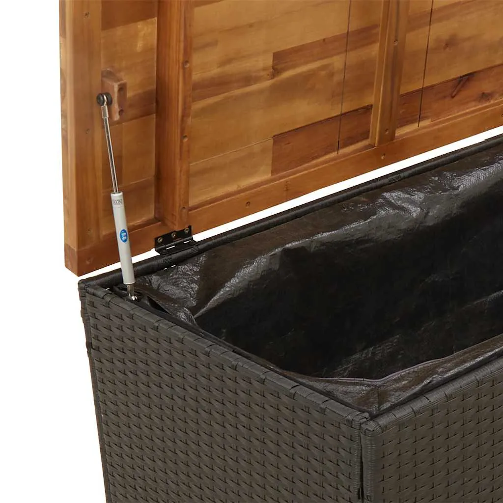 Gartentruhe Schwarz 110x55x63 cm Poly Rattan Akazienholz