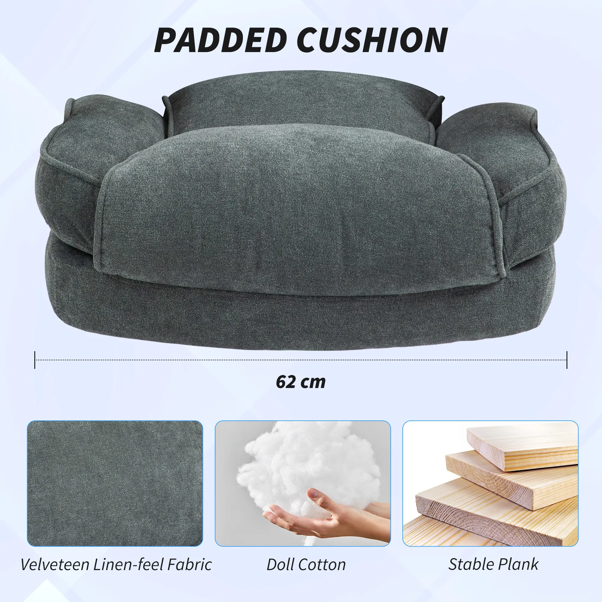 - Dicke Puppenbaumwoll- und Schaumstoffpolsterung mit Samtstoff sorgen für atmungsaktiven Komfort.