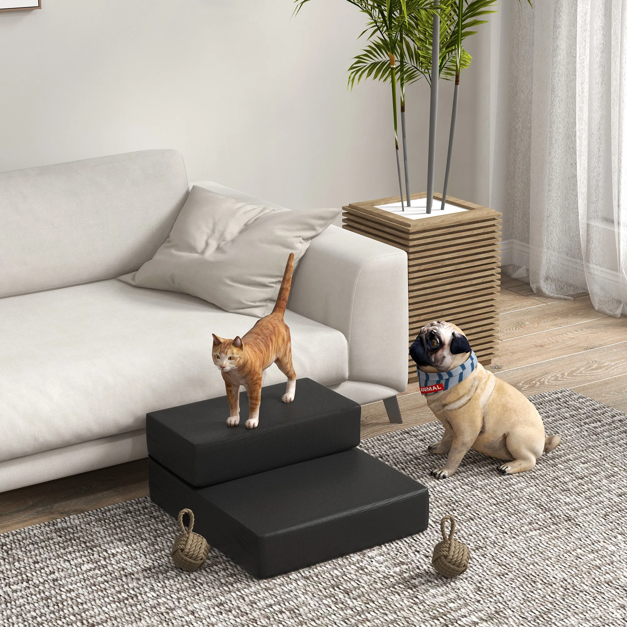 Haustiertreppe Tierunterlage 2 Stufen Klappbar Hundetreppe Treppe Unterlage für Katzen und Hunde Schwarz L45 x B39 x H20 cm