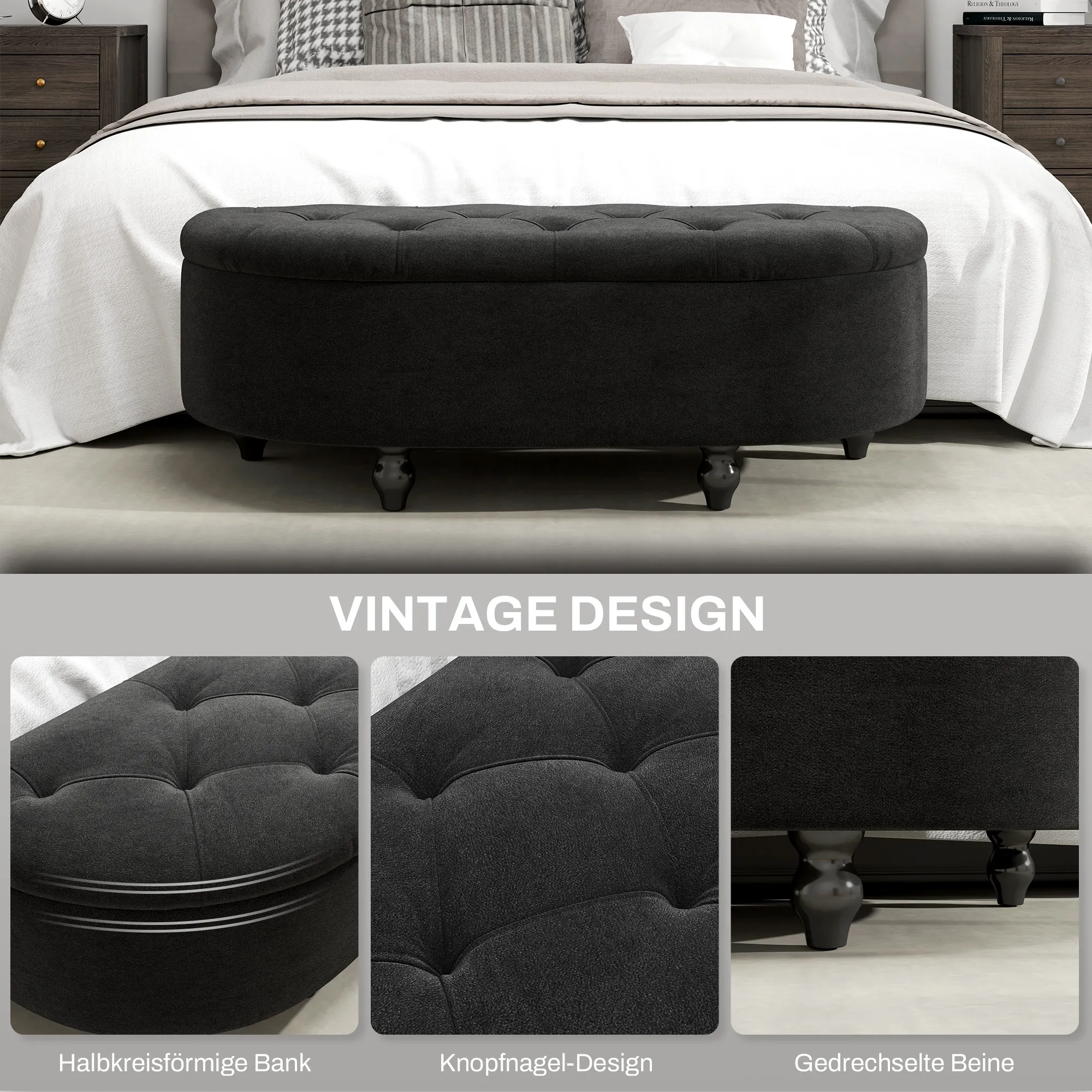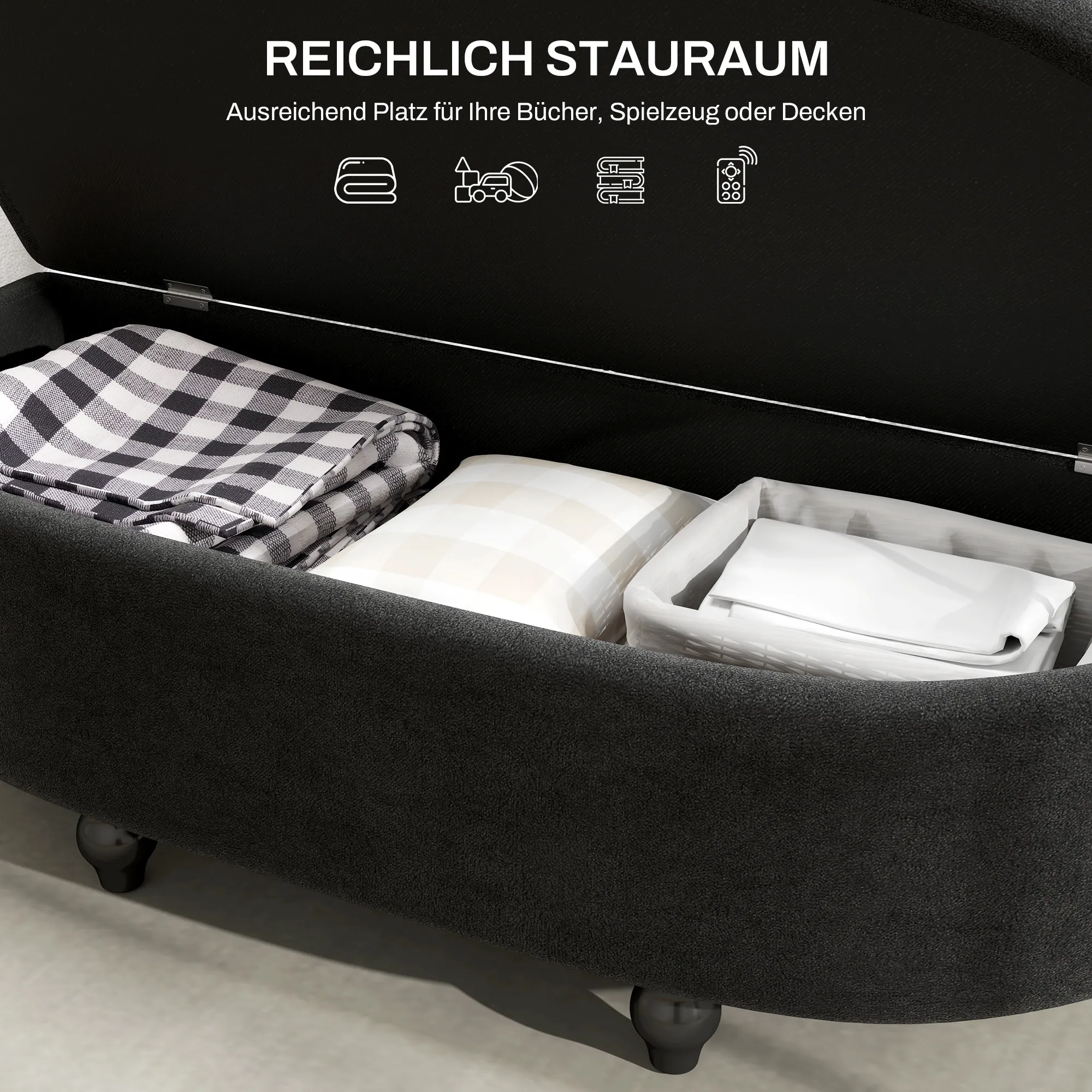 Hocker mit Stauraum, Sitztruhe, gepolstert, soft-close Deckel, Samtoptik, 120 x 46 x 42 cm, Dunkelgrau