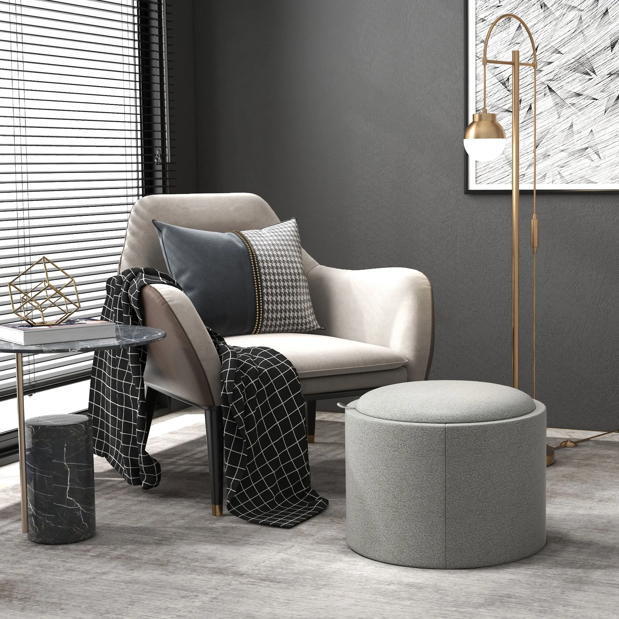 Hocker Polsterhocker, Leinen, versteckter Stauraum, umkehrbarer Deckel, 5 6cm x 56 cm x 42 cm, Grau + Natur