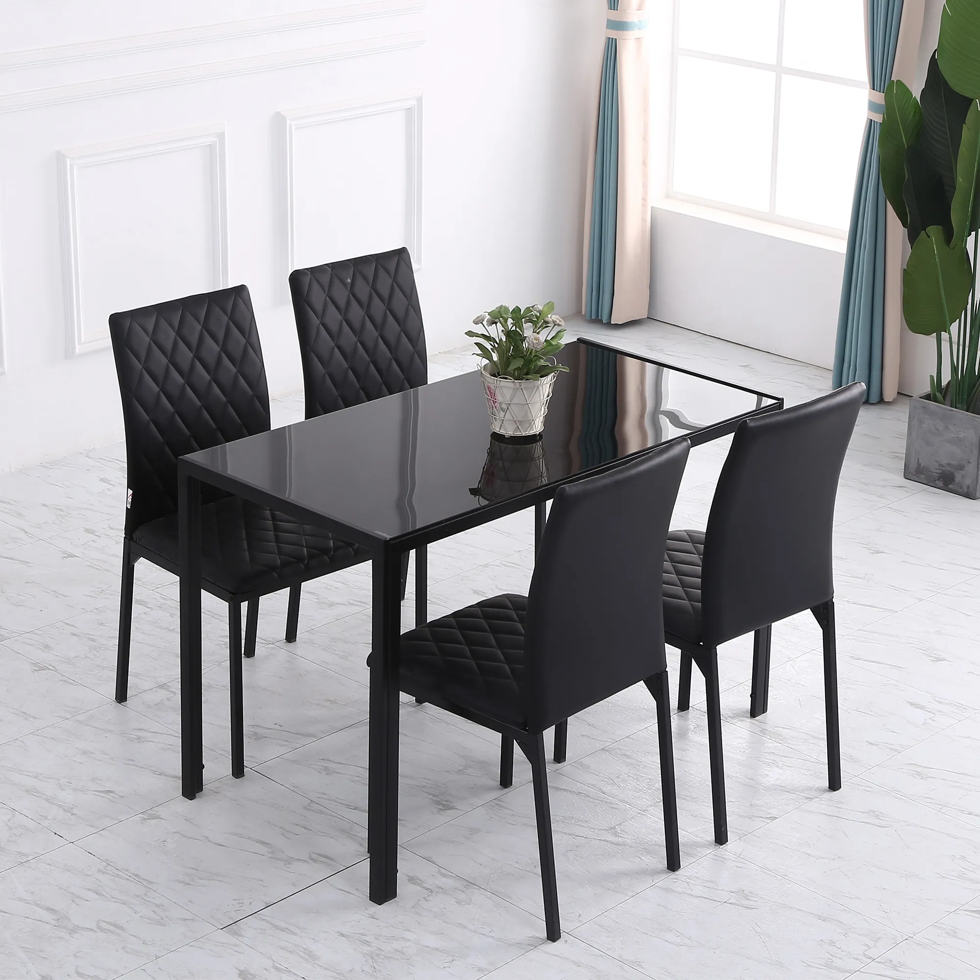 HOCMOM 4er-Set Stühle Esszimmerstühle Küchenstühle 41 cm x 50 cm x 91 cm, Schwarz