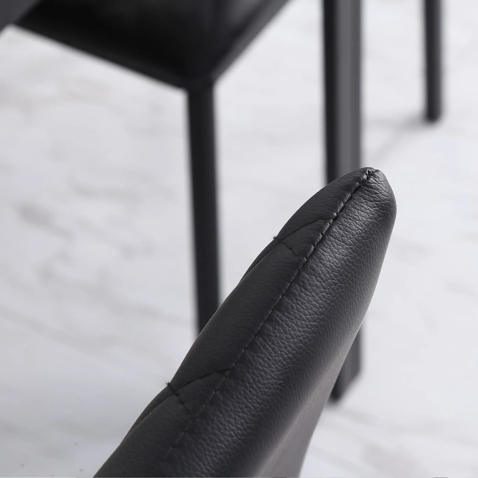 Schaffen Sie Platz für jeden ihren Gast, mit dem Küchenstuhl-Set von , bestehend aus 4 modernen Stühlen, passt es gut zu verschiedenen Einrichtungsstilen und in jedes Zuhause. Die hohe Rückenlehne bietet optimalen Halt und der gepolsterte Sitz mit Kunstlederbezug sorgt für einen maximalen Komfort. Der Stahlrahmen macht die Stühle robust und für den täglichen Gebrauch geeignet. Ausgestattet mit Bodenschonern, um Kratzer zu vermeiden.
