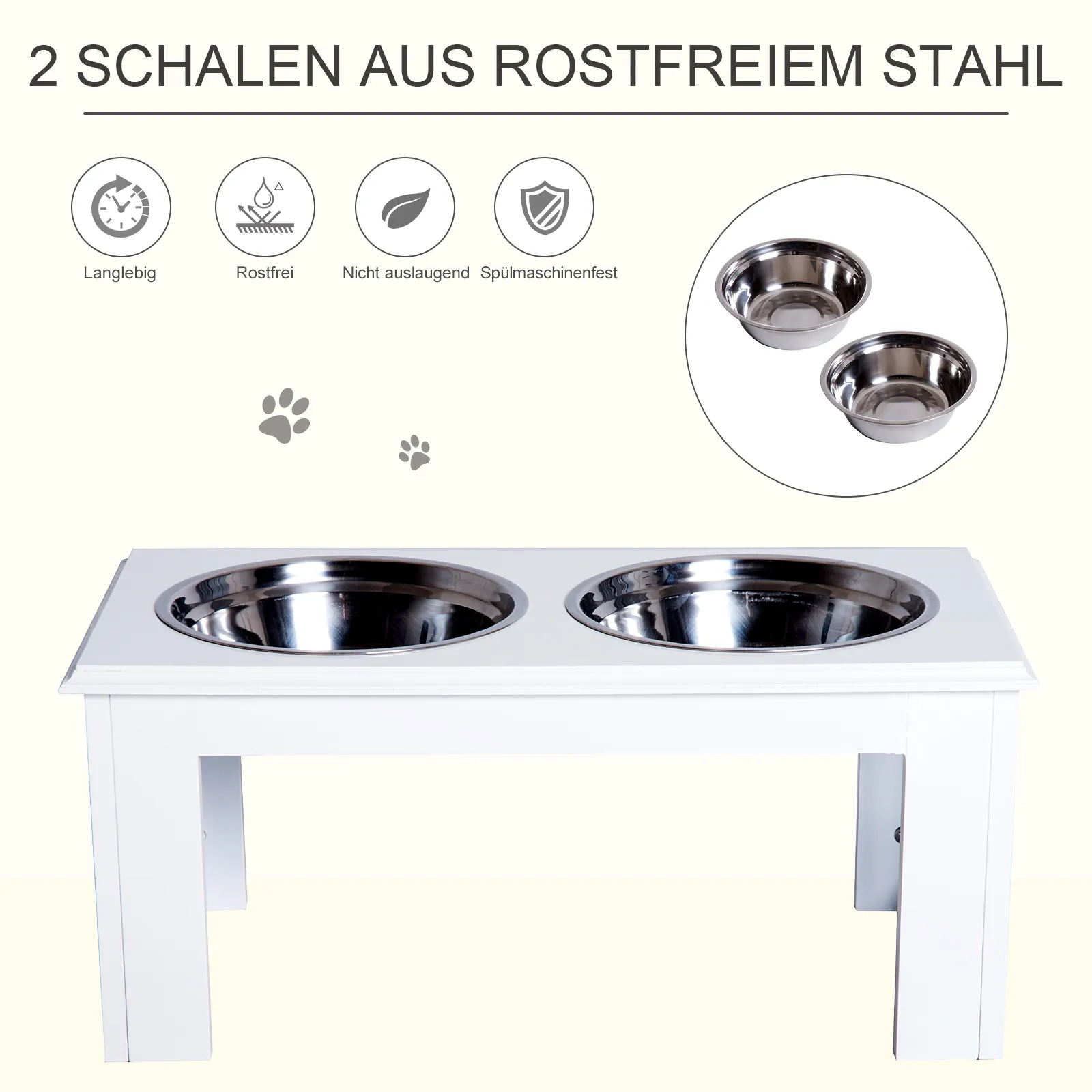 Beschreibung:- Hochwertige Edelstahlnäpfe: Hygienisch, rostfrei und für die einfache Reinigung spülmaschinenfest