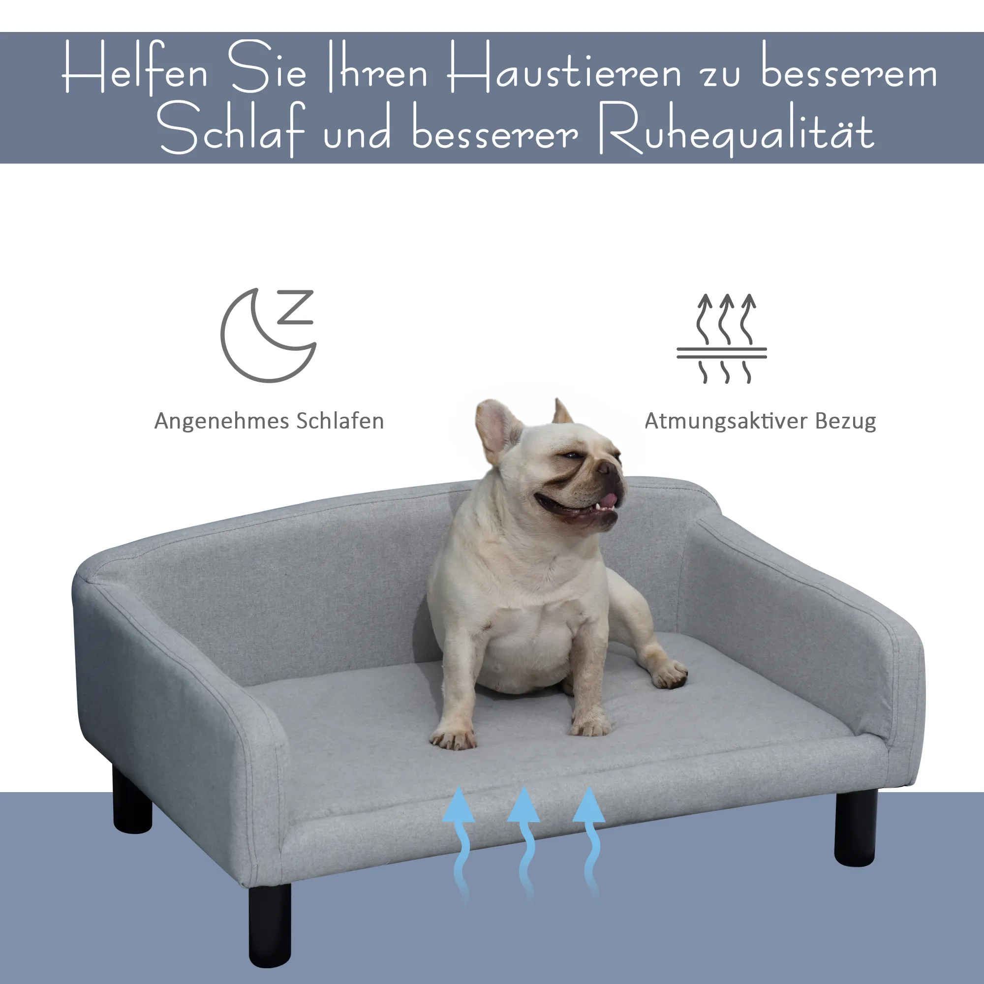 Hundesofa Hundebett Hundecouch aus Samt mit Rückenlehne, Holzbeine, Katzensofa für mittle Hunde 82 x 54 x 36 cm Hellgrau