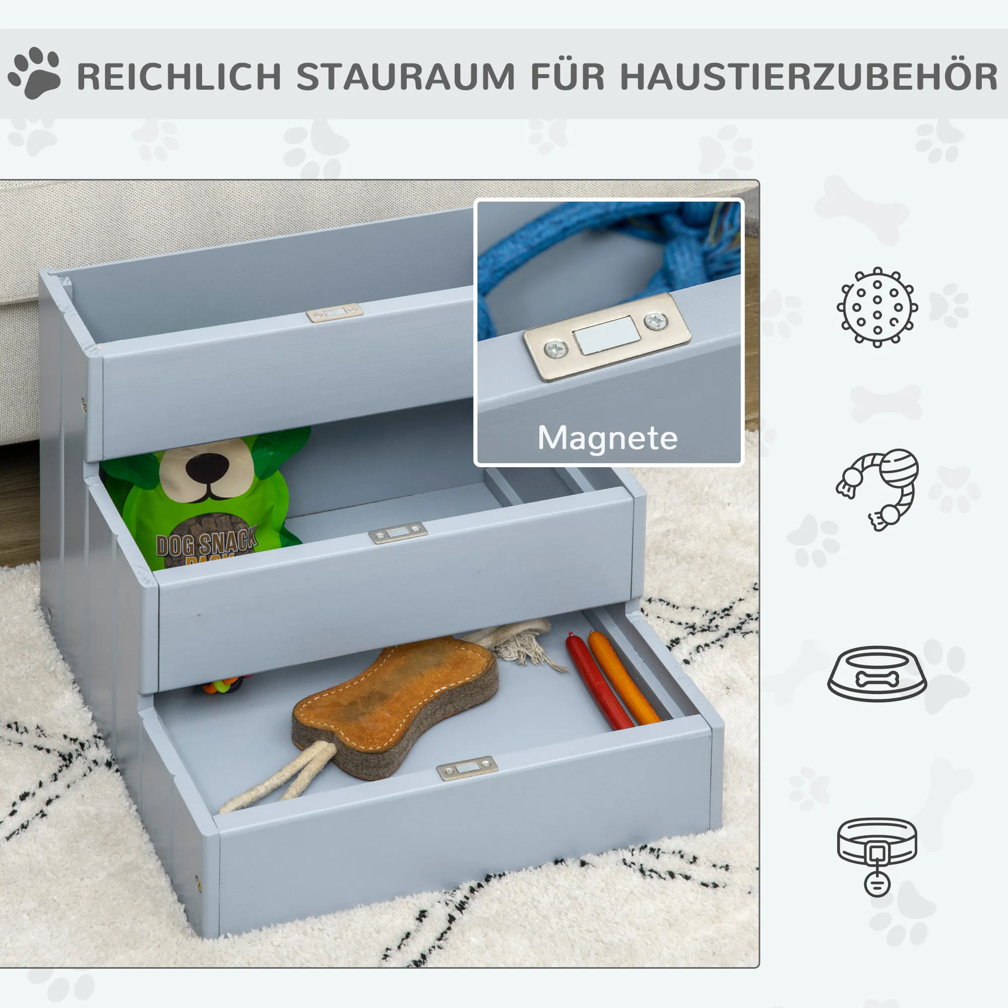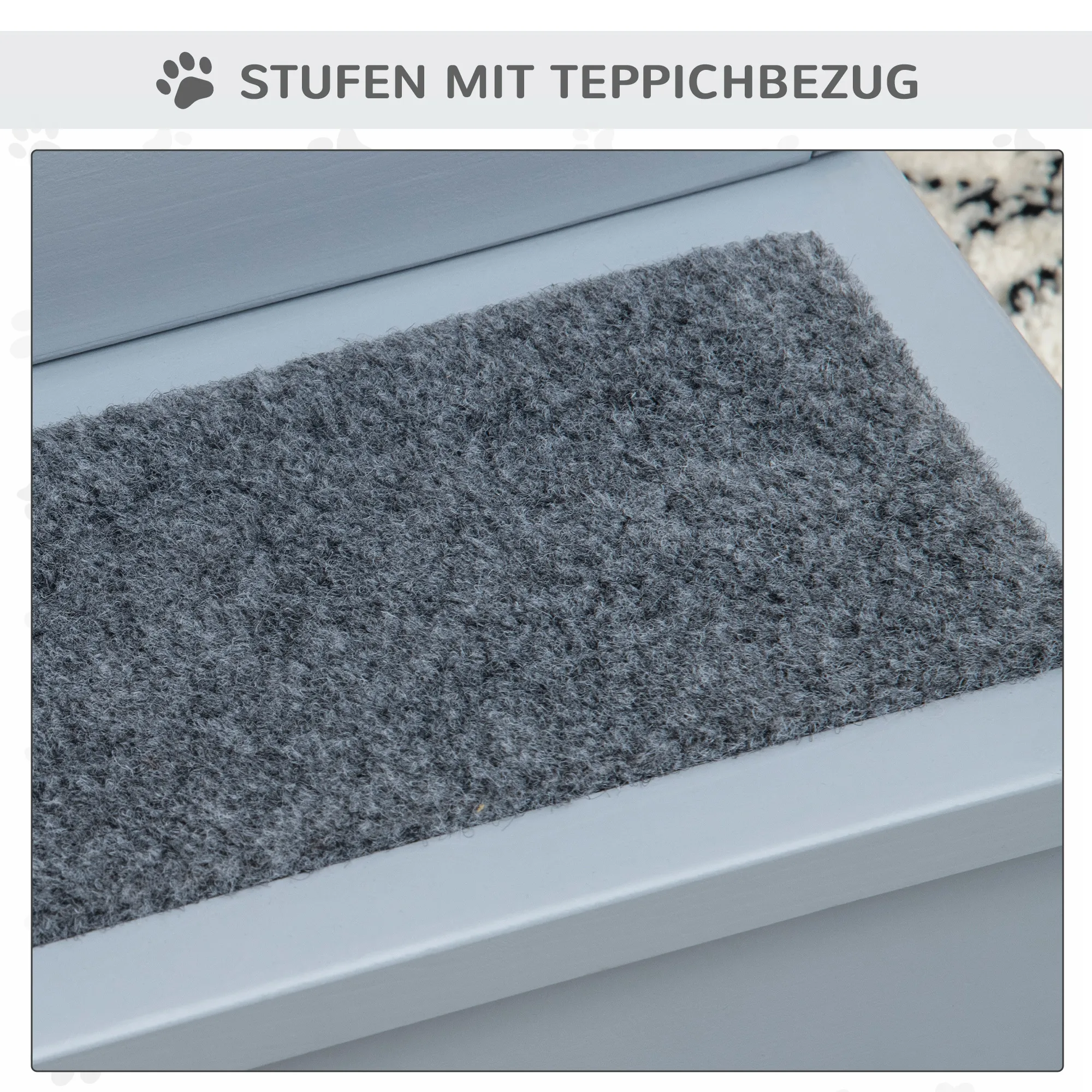 Hundetreppe 3 Stufen 38 cm Hoch Haustiertreppe für kleine bis mittelgroße Hunde Katzentreppe Hunderampe Einstiegshilfe für Bett, Sofa, Couch und Auto Grau