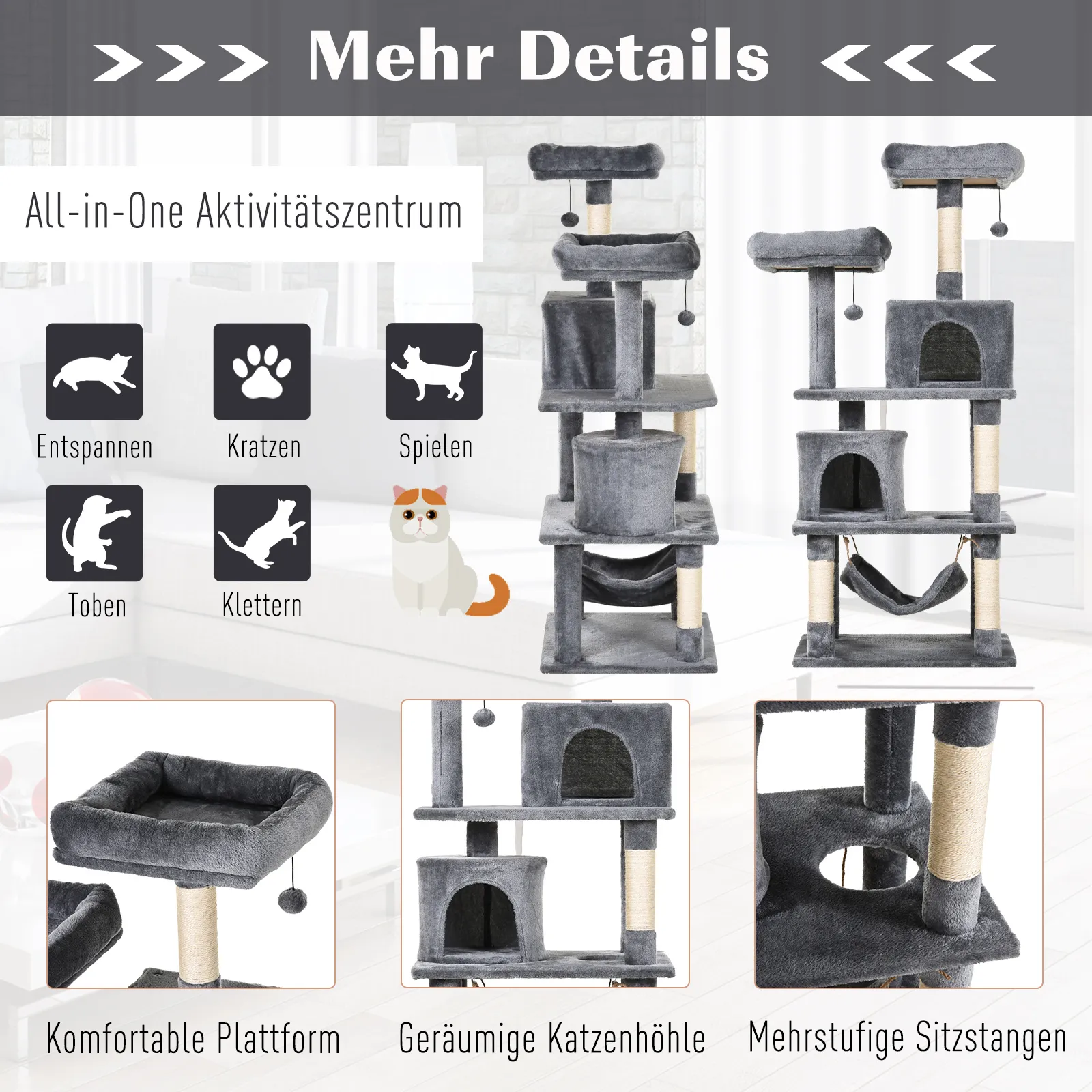 - Ausgestattet mit einer multifunktionalen Hängematte und Bällen, die dem täglichen Leben Ihrer Katze mehr Freude bereiten