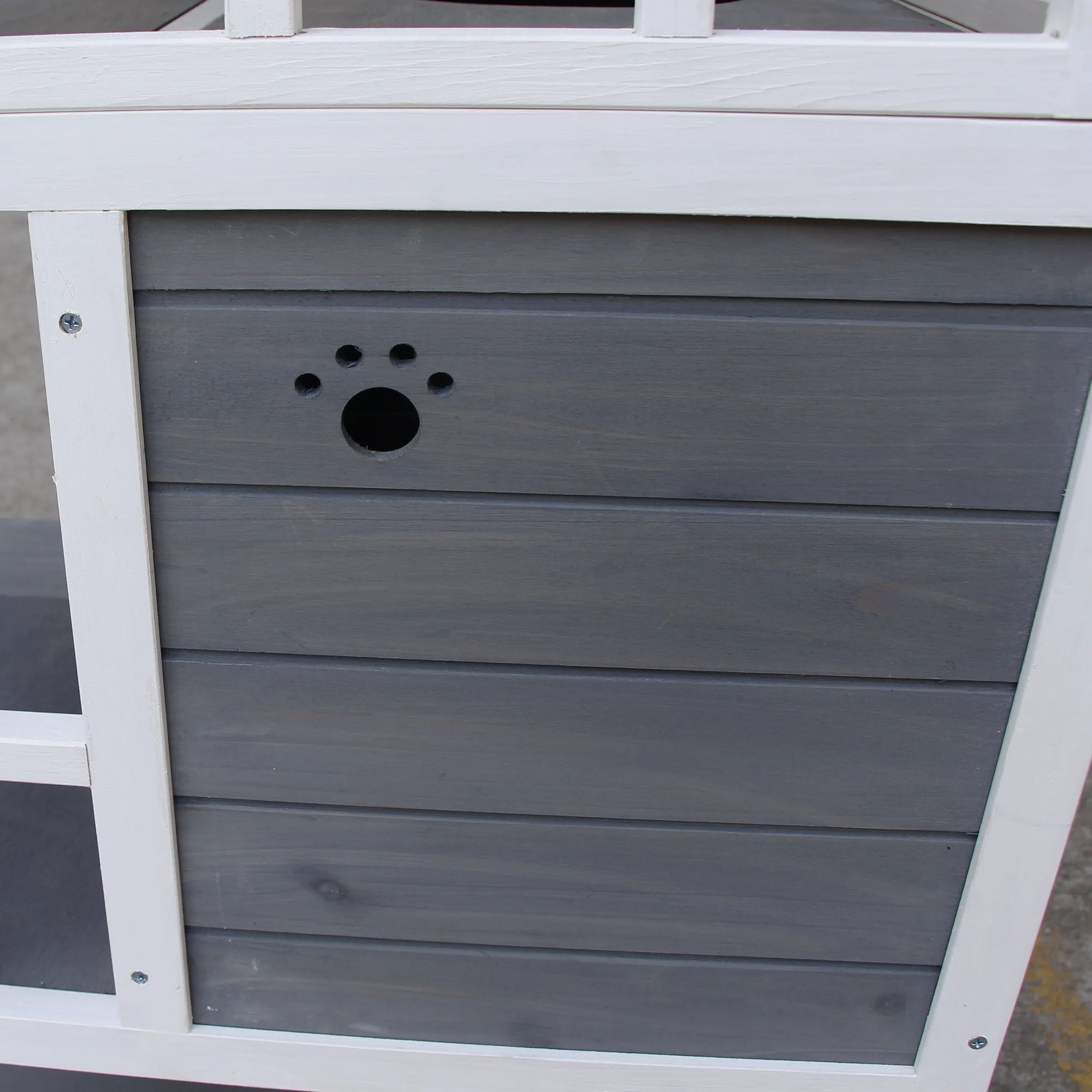 Katzenhaus, Tannenholz, Katzenhütte für draußen mit Terrasse, Katzenhöhle, 4 Etagen, Katzenvilla mit Treppe, Asphaltdach, Winterfest, Kleintierhaus, Grau, 75,5 x 75 x 137 cm