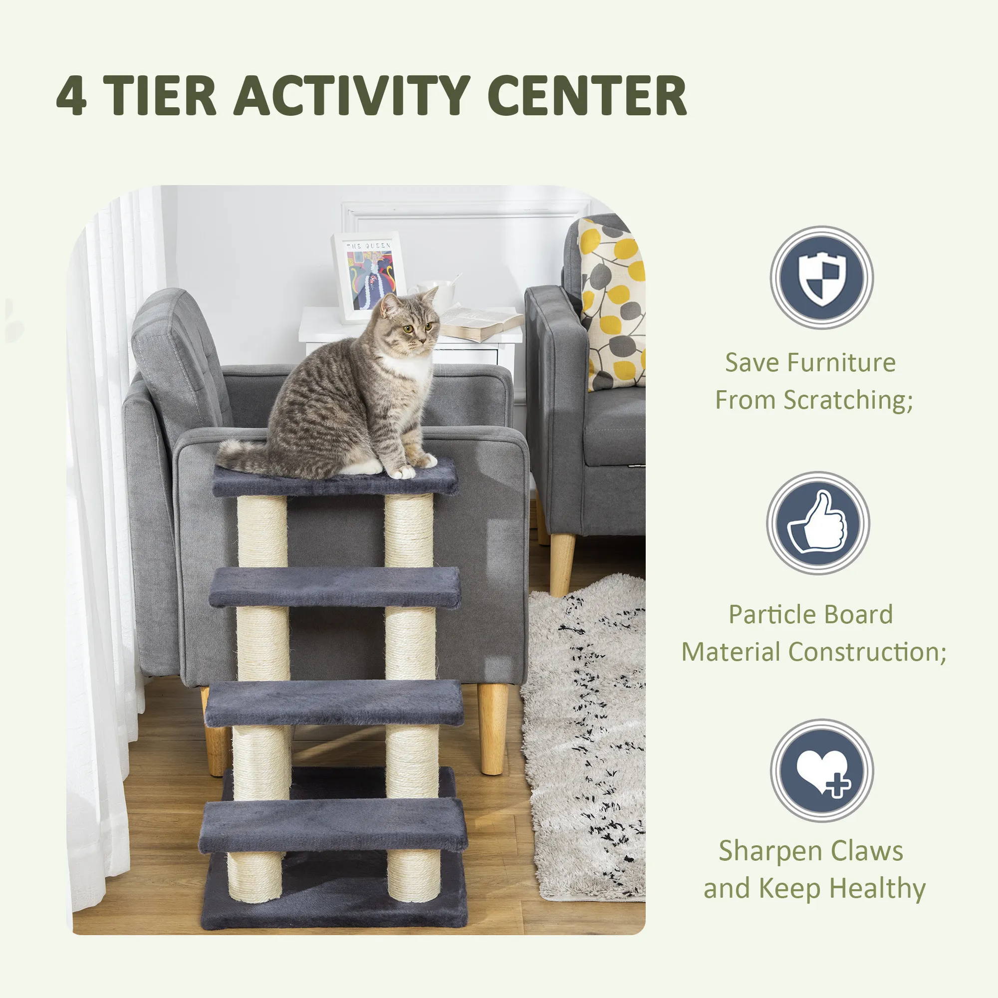 Katzentreppe 4-stufige Haustiertreppe 59 cm hoch Hundetreppe für Katzen aller Größen Hunderampe Einstiegshilfe für Bett, Sofa, Couch Grau