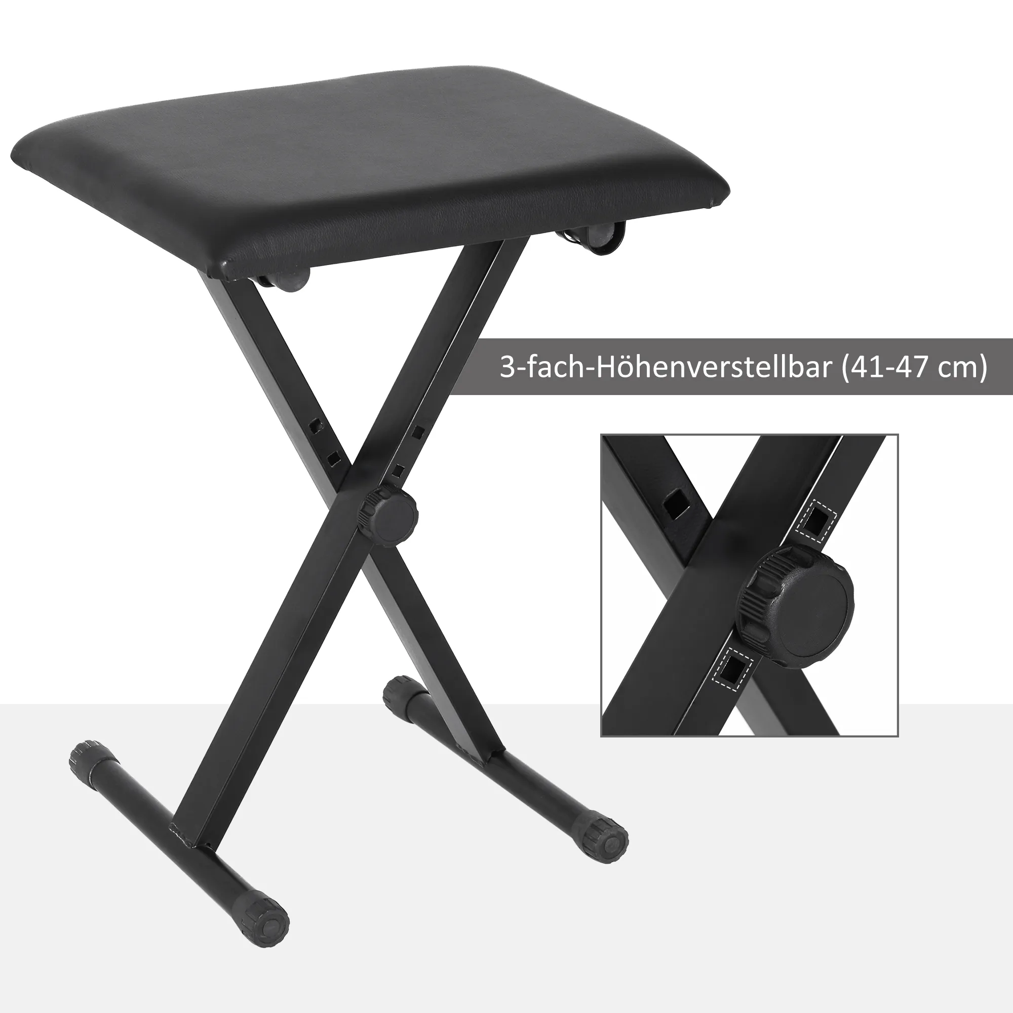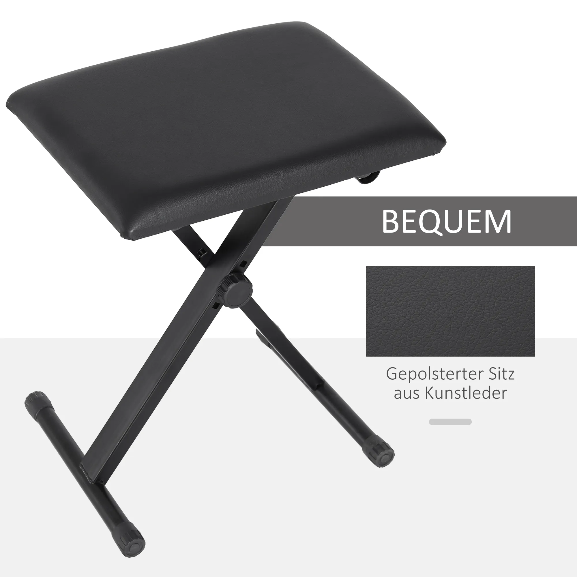 Klavierhocker Höhenverstellbar Klavierbank, X-förmiger Pianobank mit Kunstleder Kissen Klappbare Klavierstuhl für Piano Keyboard 39 x 29 x 37-47 cm Schwarz