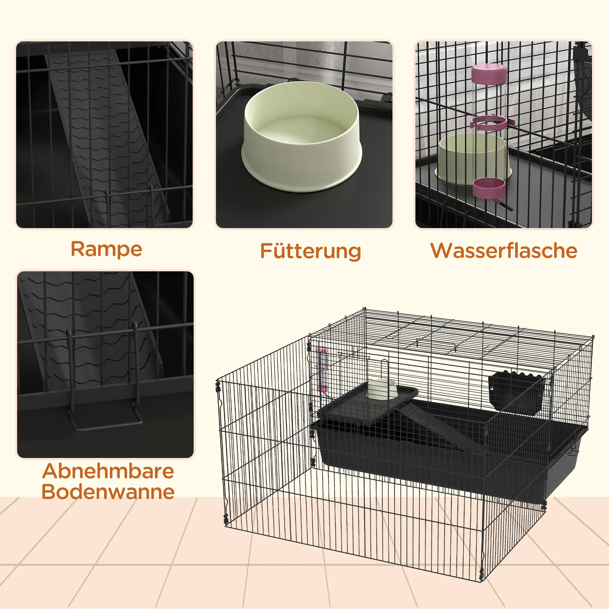 Kleintierkäfig mit abnehmbaren Gehege, Laufgitter mit Stall, inkl. Zubehör, Schwarz