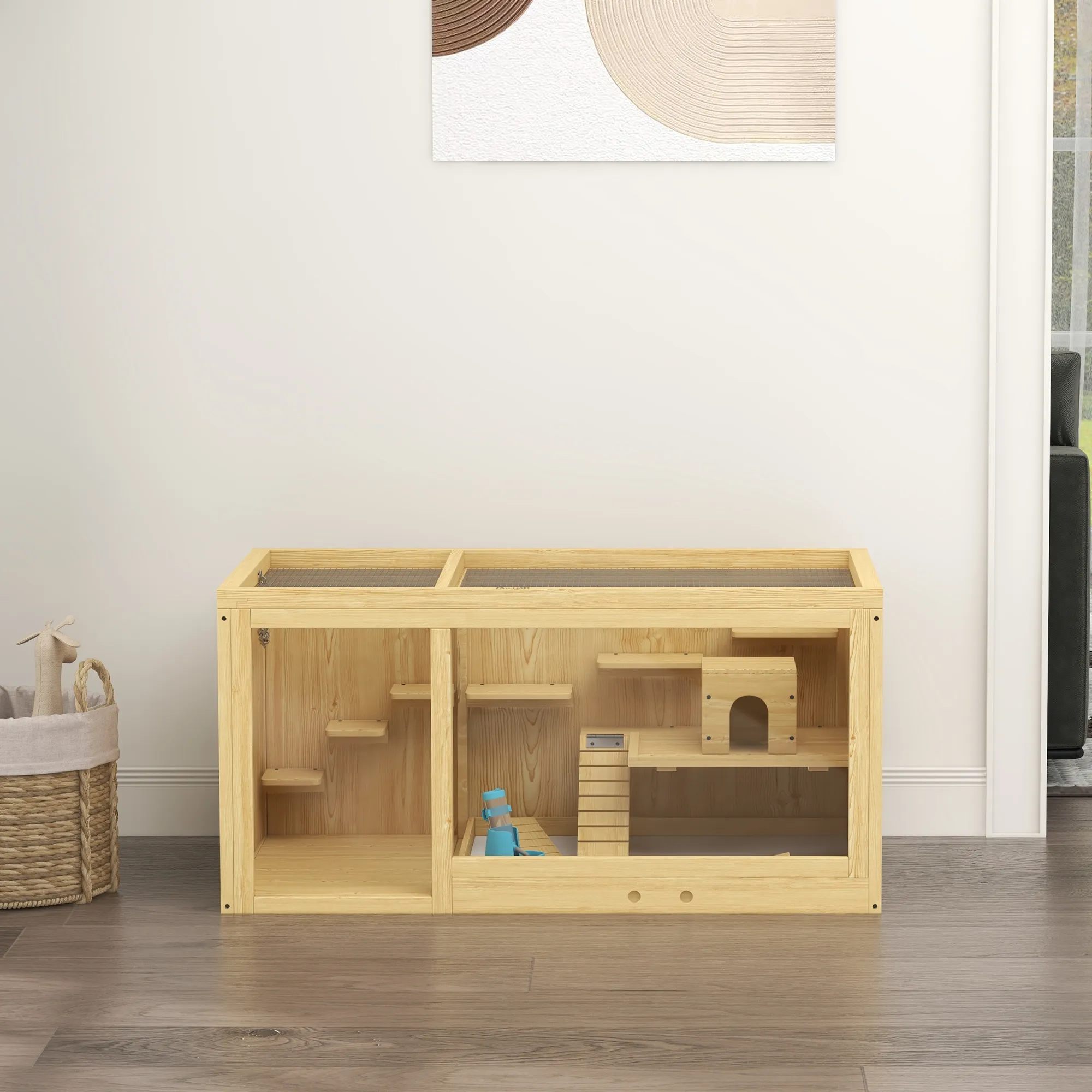 - Aufklappbare Oberseite des Kleintierstalls für einfachen Zugang und Interaktion