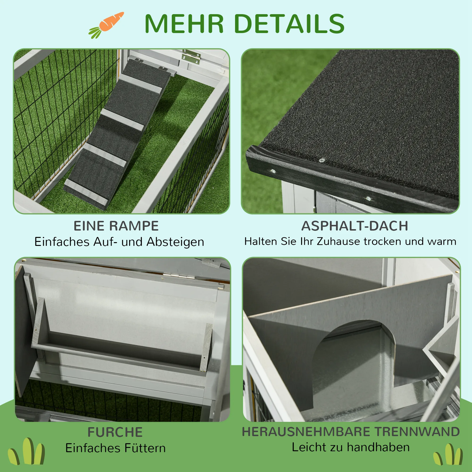 Beschreibung:- Der zweistöckige Draußen-Hasenstall ist aus Massivholz gefertigt, um eine lange Haltbarkeit und viel Platz für Meerschweinchen, und andere kleine Haustiere zu gewährleisten