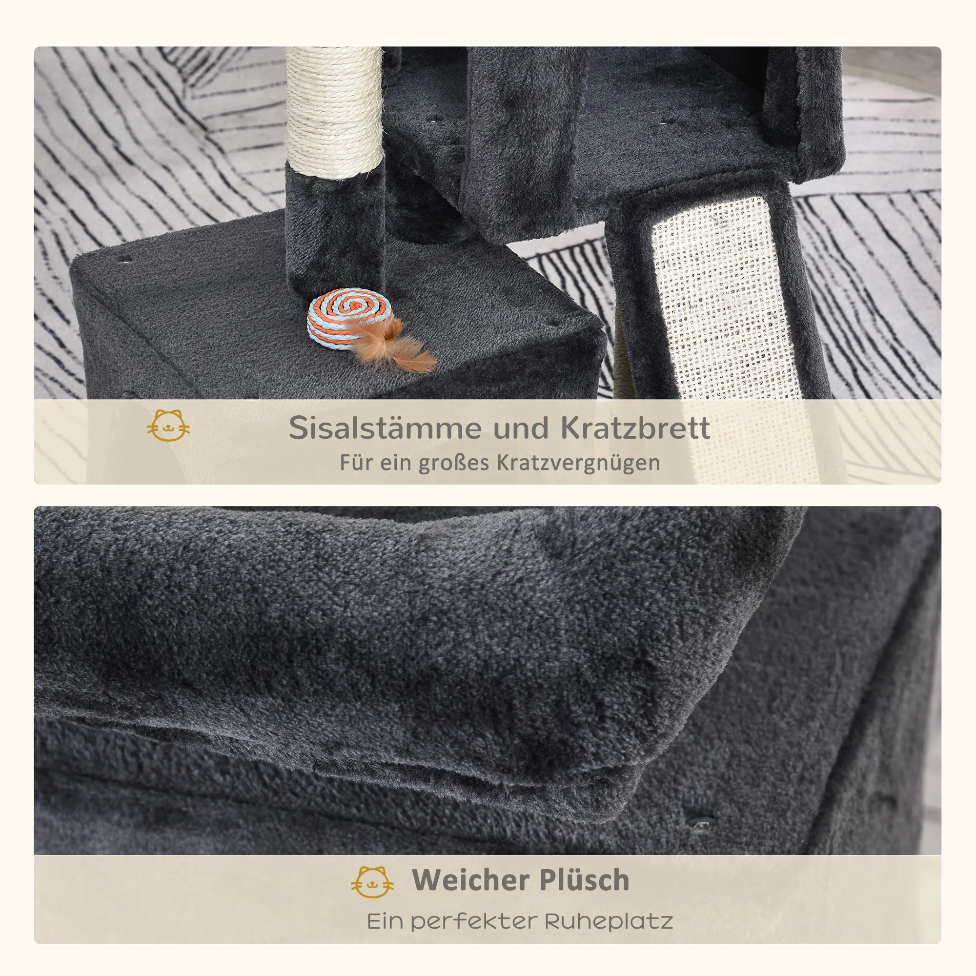 - Material: Spanplatte, Plüsch, Sisal