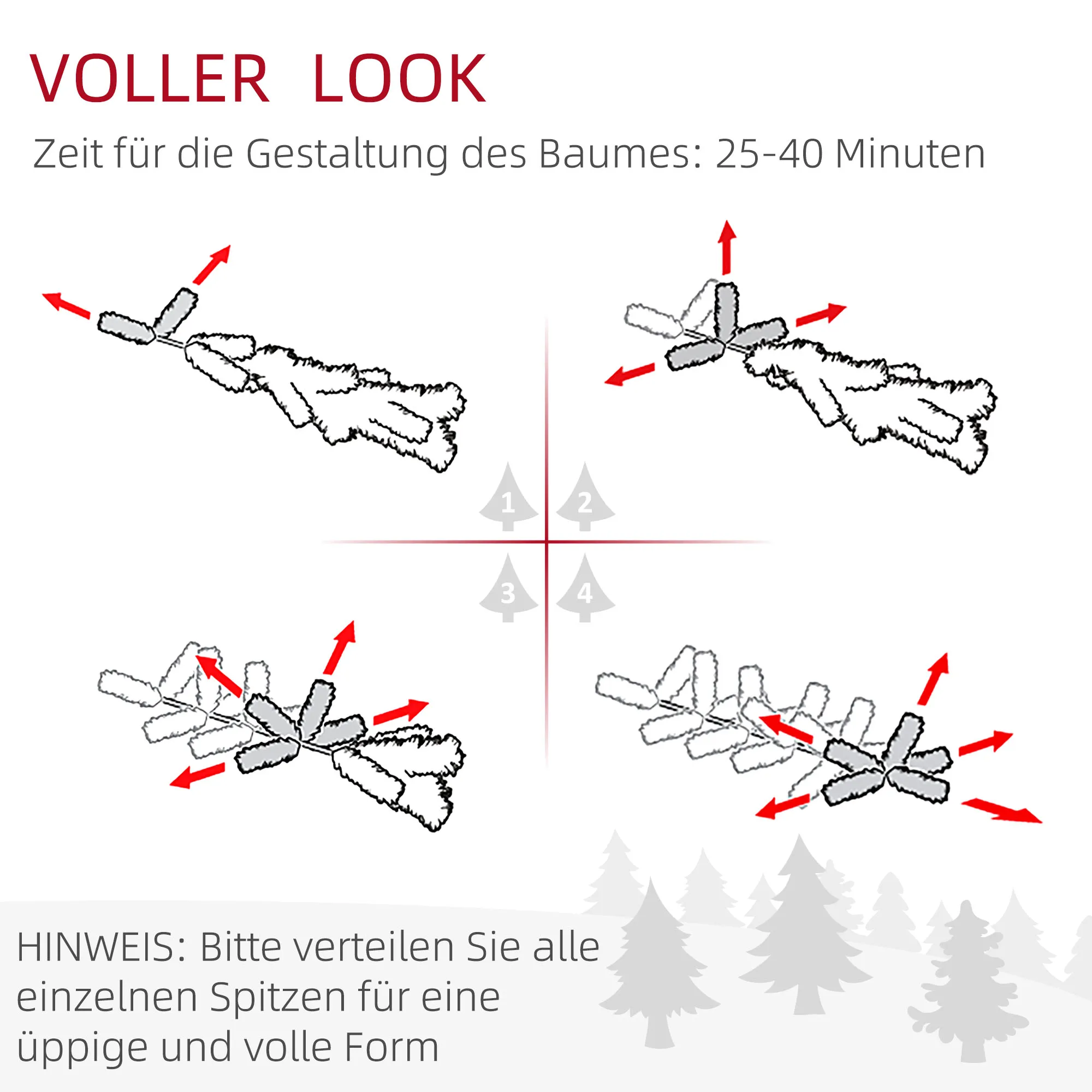 - 2, Für ein vollständiges Erscheinungsbild alle einzelnen Spitzen ausbreiten (dauert 25-40 Minuten)