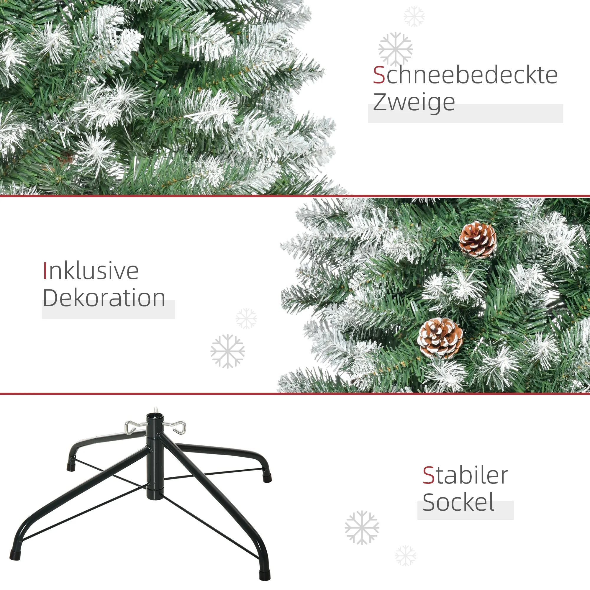 Haben Sie schon oft überlegt, einen echten künstlichen Weihnachtsbaum zu kaufen, weil künstliche Bäume oft unrealistisch wirken? Dann sind Sie hier genau richtig! Der künstliche Weihnachtsbaum vereint die Schönheit eines natürlichen Baums mit schneebedeckten Zweigen und dekorativen Zapfen. Dank der stabilen Metallstruktur des künstlichen Weihnachtsbaums lässt er sich leicht auf- und abbauen. Zögern Sie nicht länger und bringen Sie festliche Magie in Ihr Zuhause!