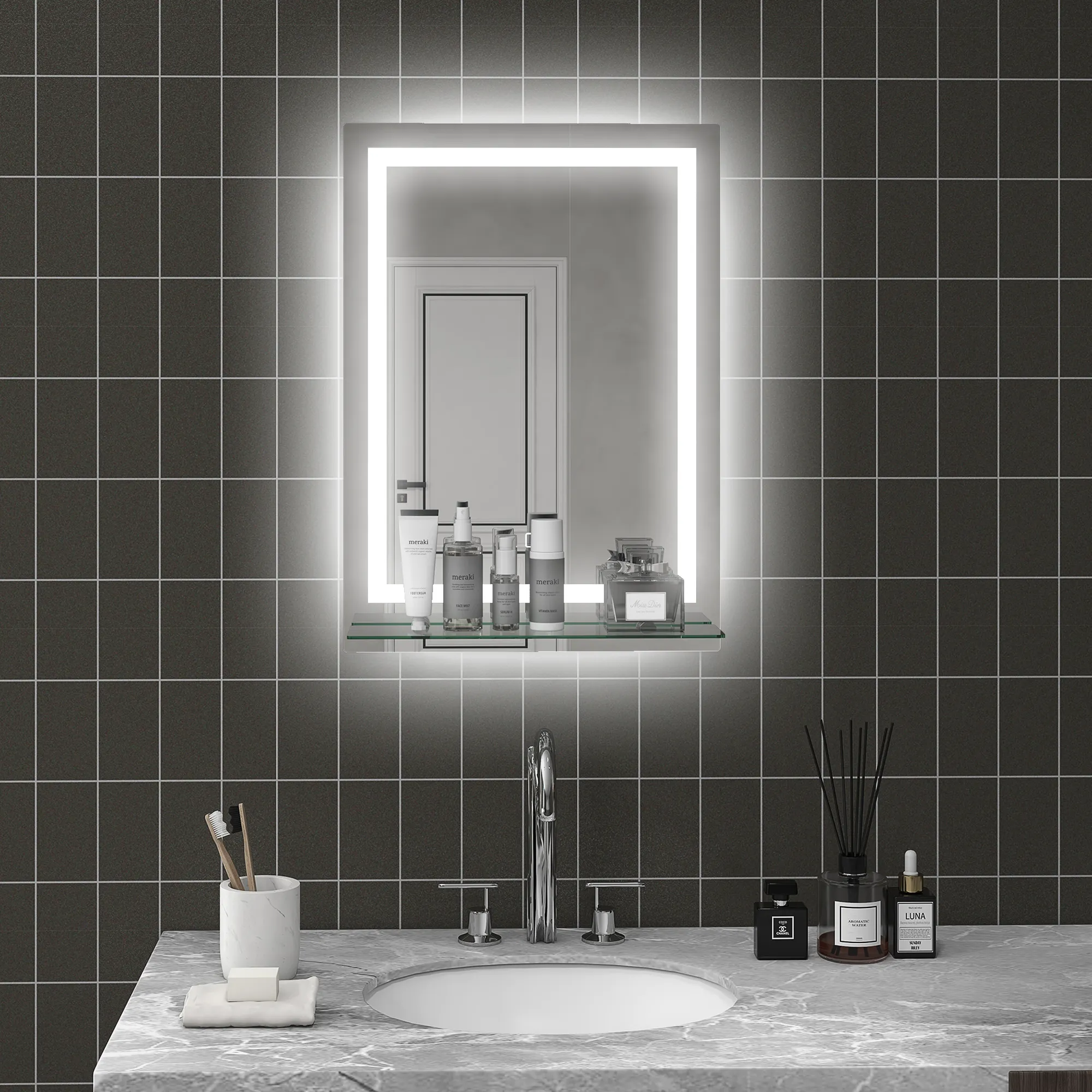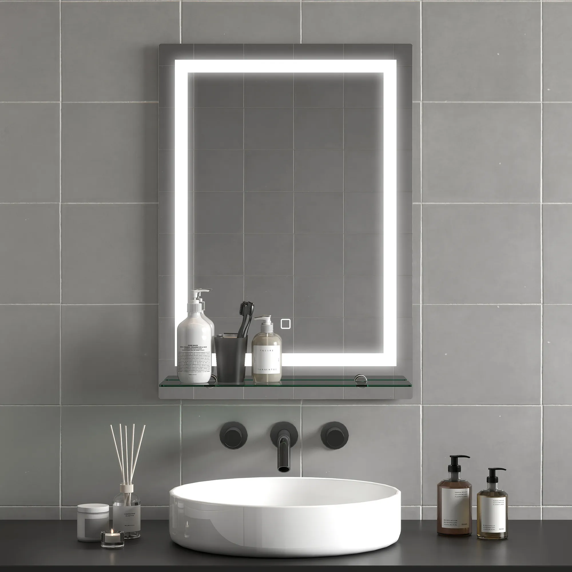 LED-Badspiegel, dimmbar, Anti-Beschlag, Touch-Schalter, Ablage, 50 x 70 cm, Silber