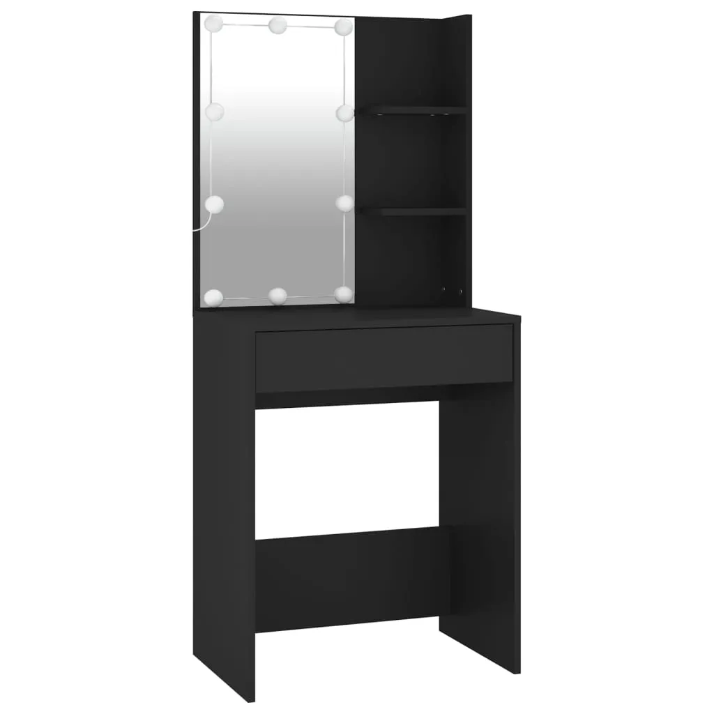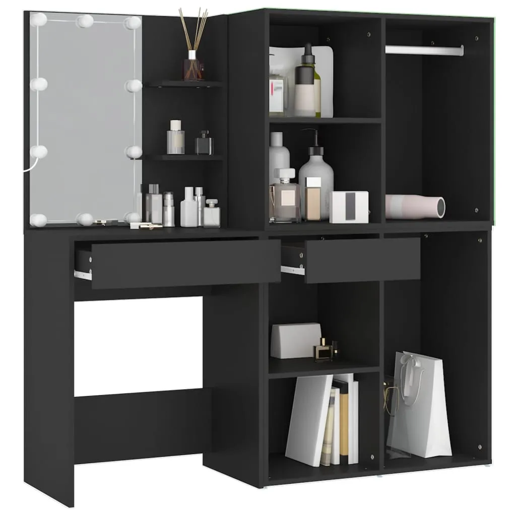 LED-Schminktisch mit Schränken Schwarz Holzwerkstoff
