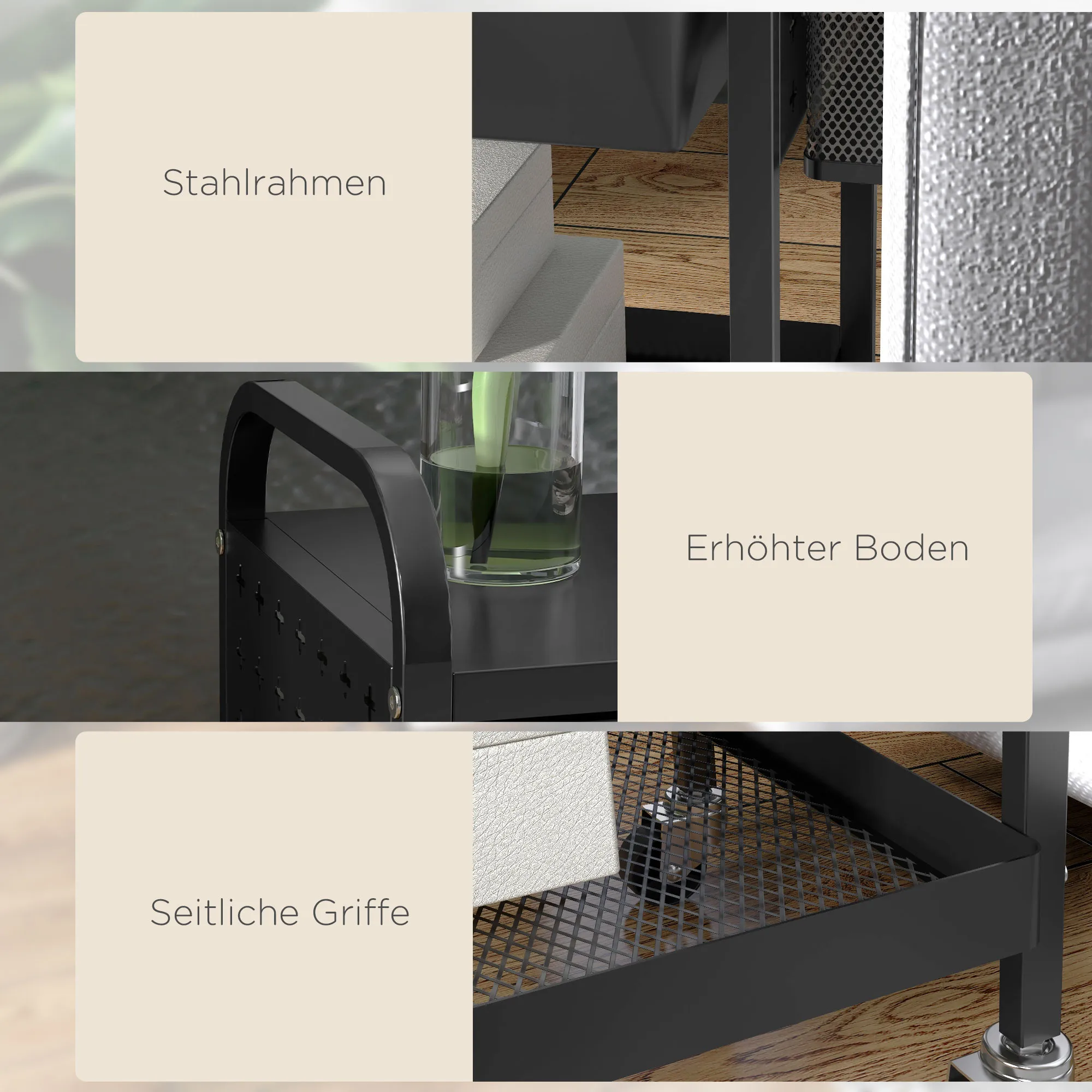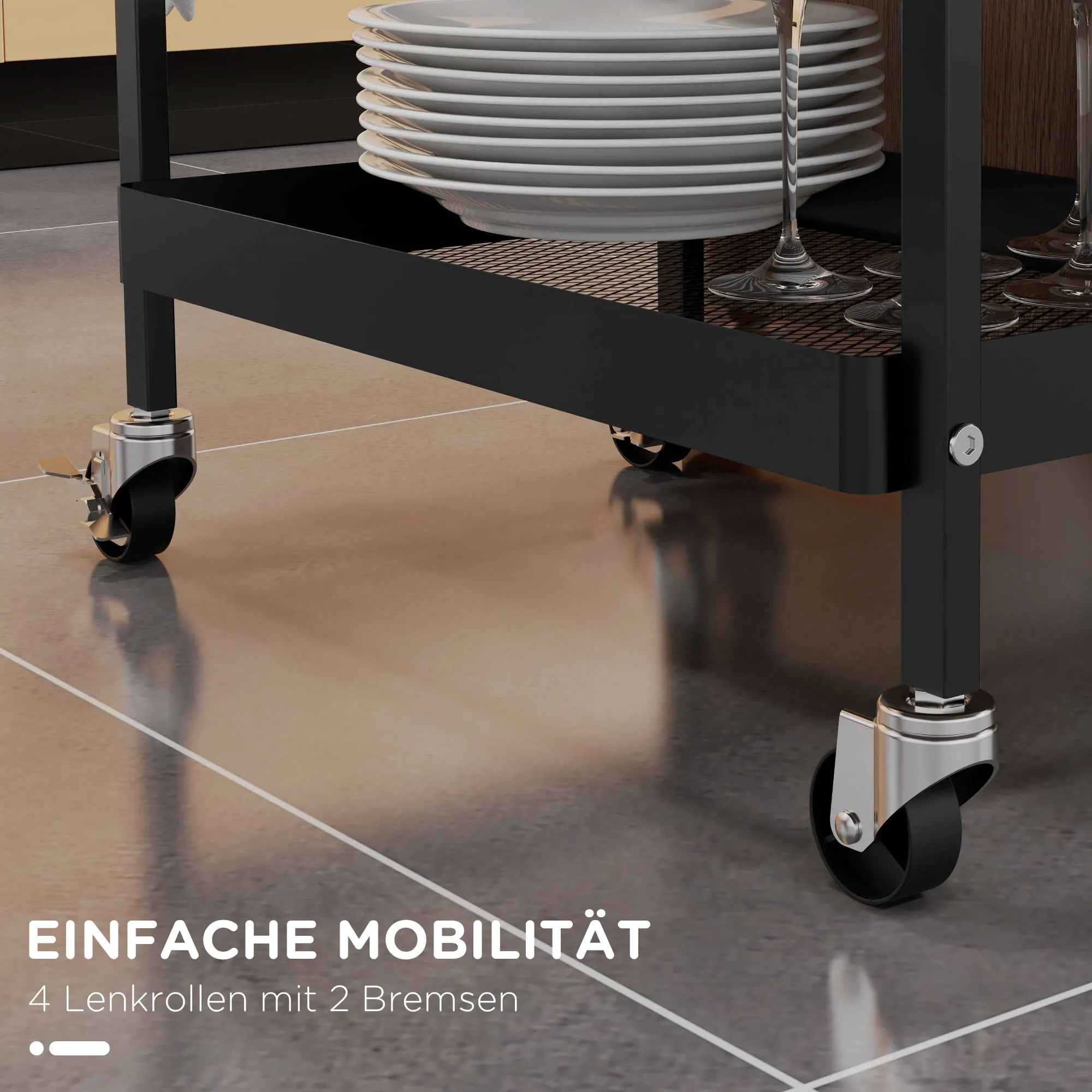 Mehrzweckwagen mit 1 Schublade, 1 Ablage, 4 Rollen, Küchenwagen, Schwarz