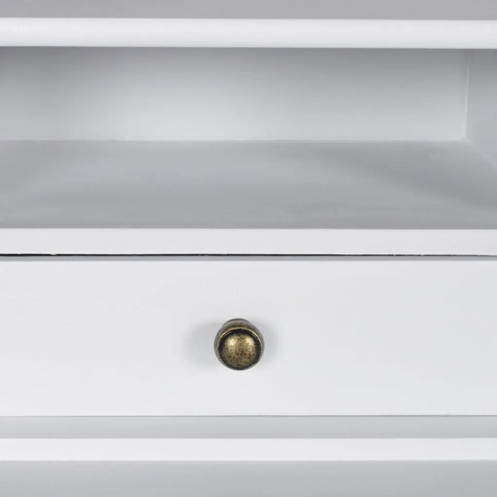 Dieser schöne Schminktisch wird Ihr Schlafzimmer oder Ihren Ankleideraum perfekt ergänzen! Es gibt zwei Fächer auf jeder Seite, die an die Tischplatte angeschlossen sind, um Ihre Wertsachen zu halten. Darüber hinaus finden Sie im unteren Teil des Tisches zwei große Schubladen für zusätzlichen Stauraum. Die Schubladen können zur Reinigung leicht entfernt werden. Das sanfte weiße Finish und die geschmeidig geschwungenen Beine verleihen Glanz und Eleganz. Überprüfen Sie unsere anderen Produkte und schauen Sie nach einem passenden Hocker, Spiegel und mehr! Bitte beachten Sie, dass dieses Möbelstück aus Holz gefertigt und weiß lackiert ist und daher kleine Mängel aufweisen kann.