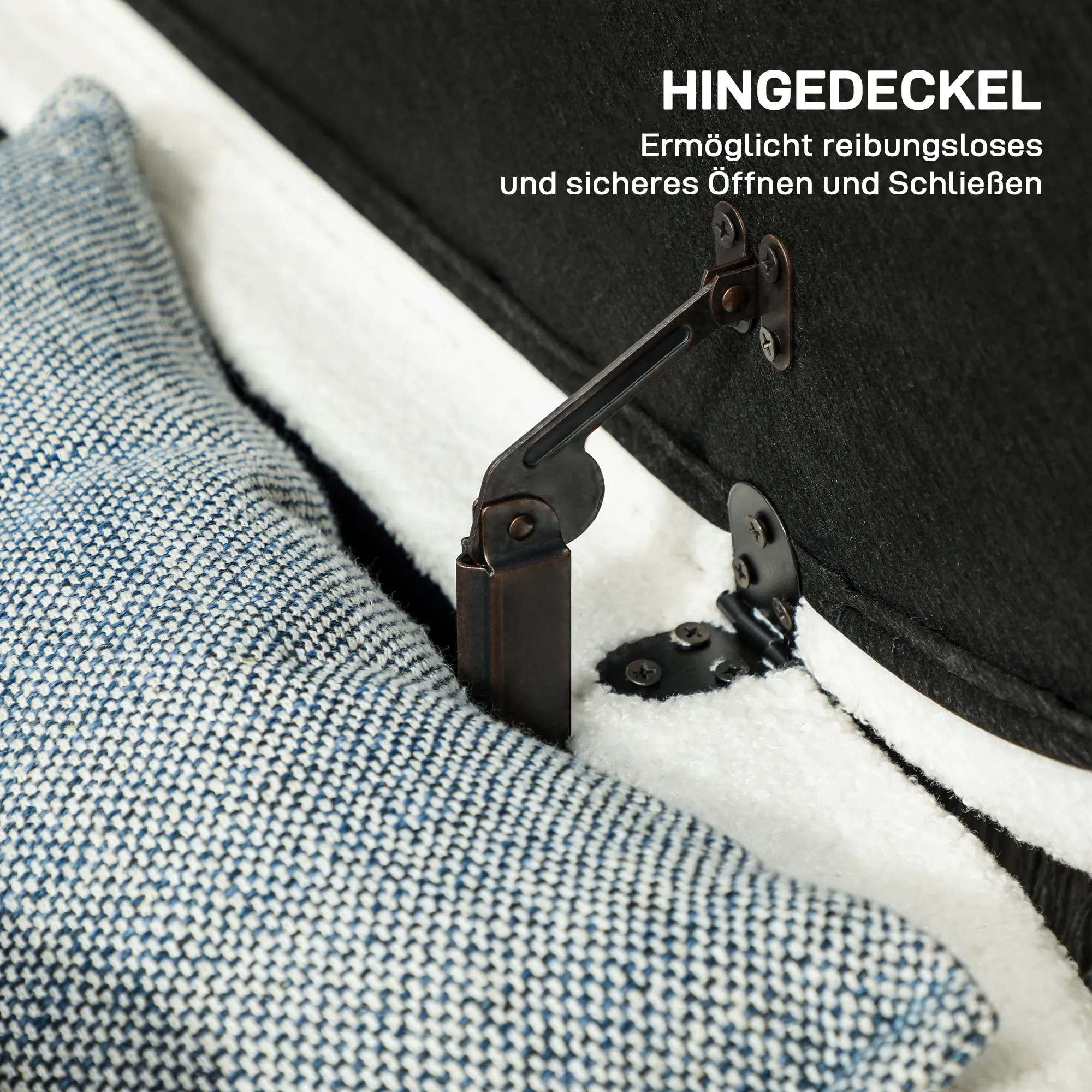 Erlebe den Charme dieser eleganten Polsterbank, die nicht nur stilvoll aussieht, sondern auch praktischen Stauraum bietet. Unter dem aufklappbaren Deckel kannst du Decken, Kissen und andere Gegenstände sicher verstauen. Der weiche Stoffbezug und die getuftete Oberfläche sorgen für einen komfortablen Sitz.