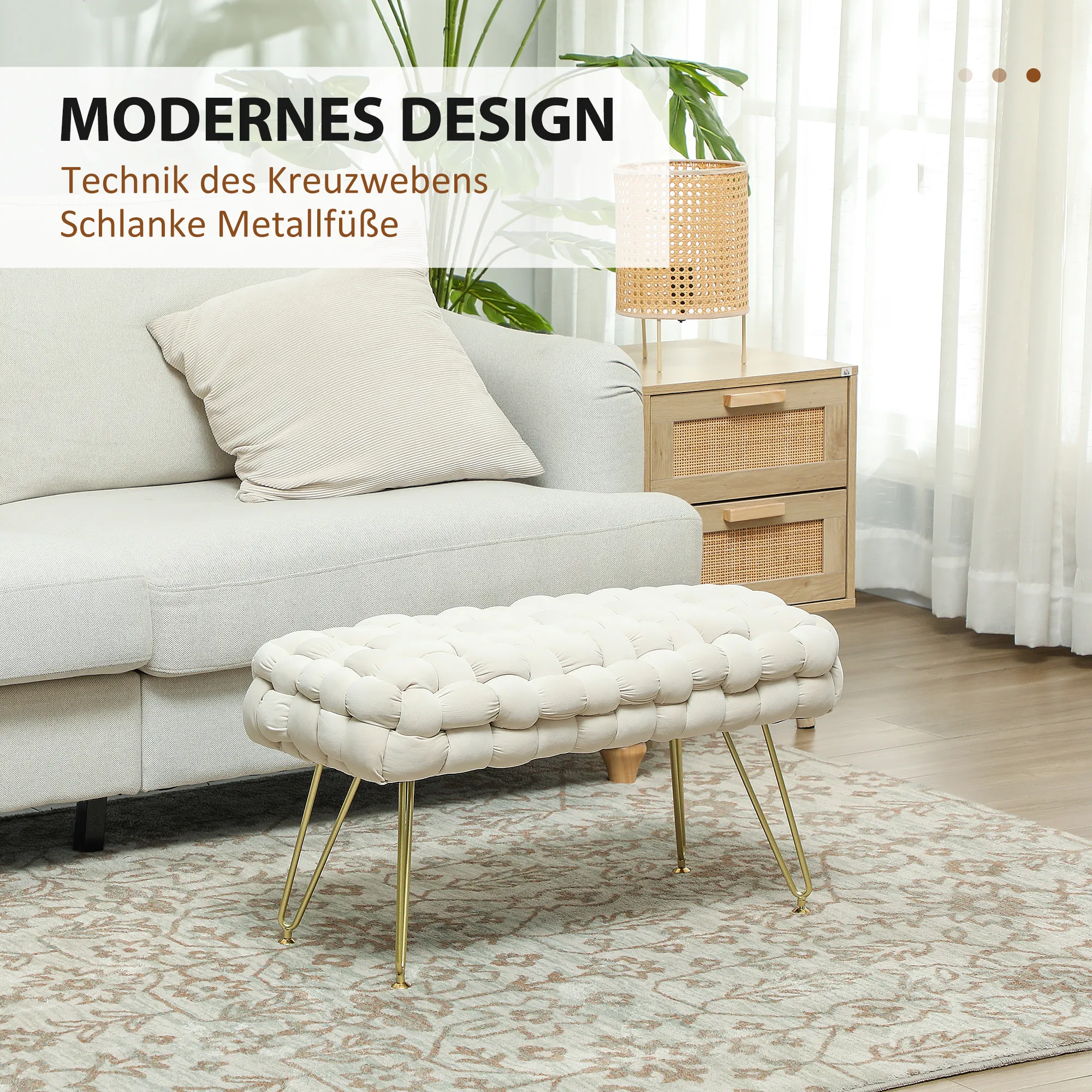 - Die Kreuzwebtechnik sorgt für einen eleganten Look.