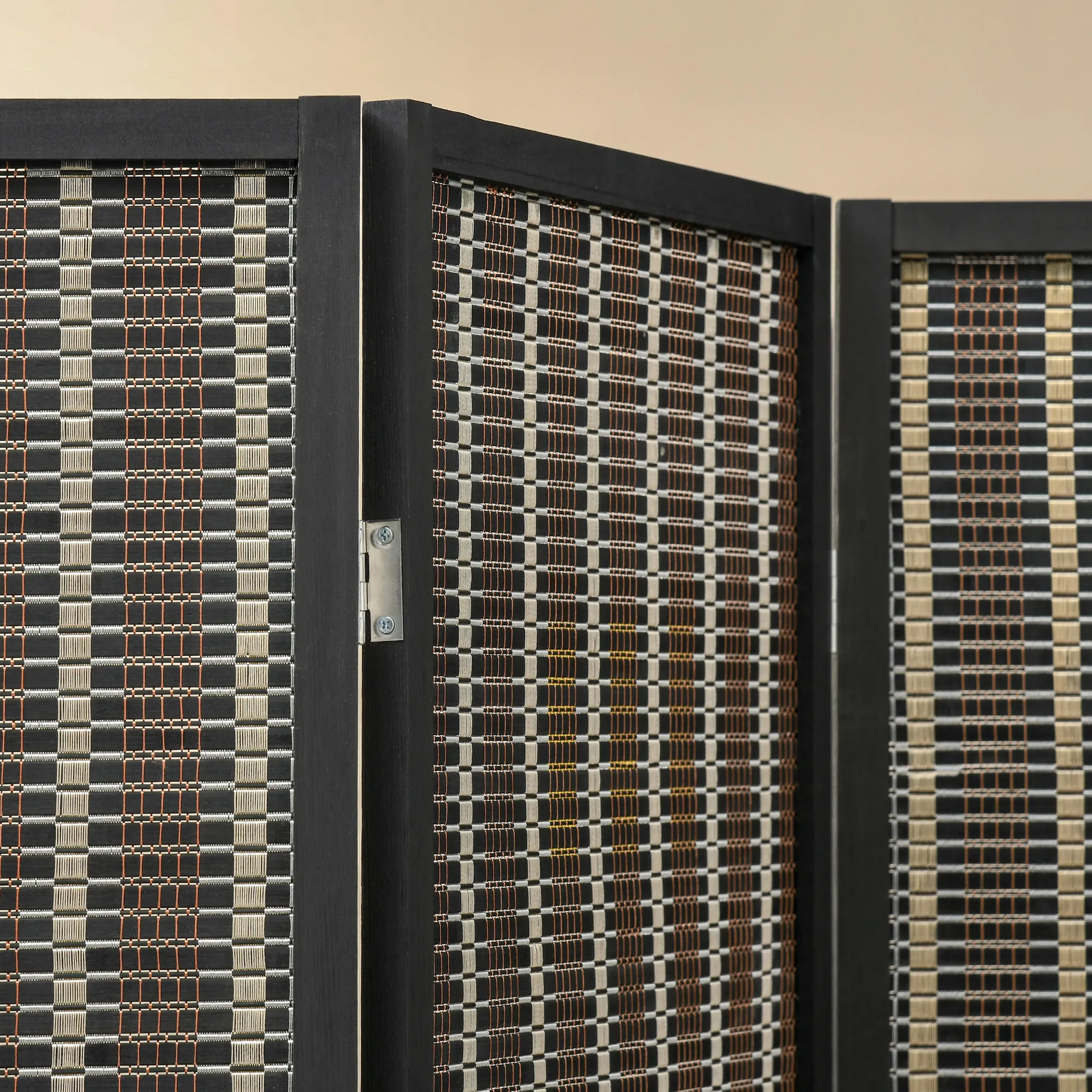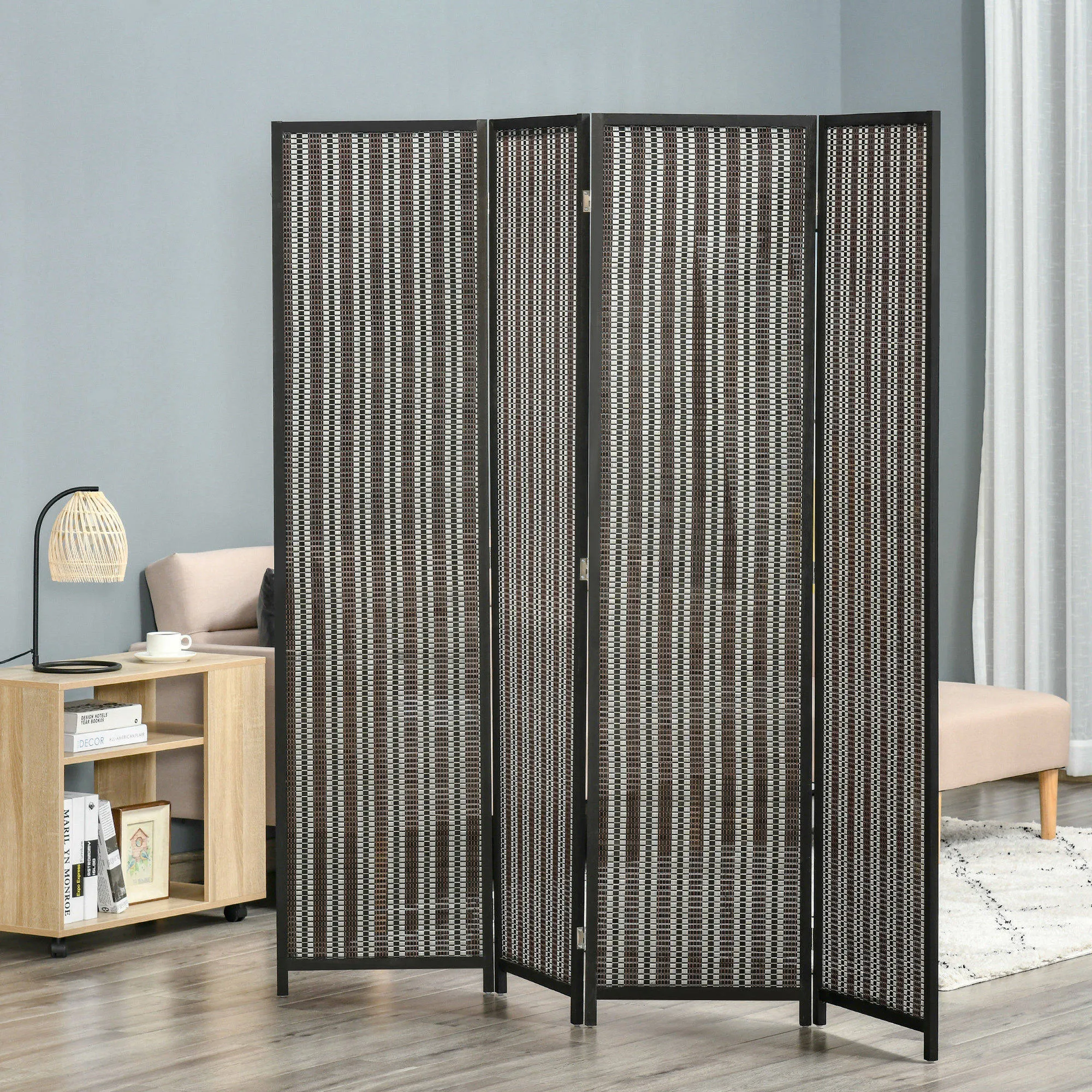 Raumteiler, faltbar, Kiefernholz/Bambus, 180 x 180 cm, Braun/Schwarz