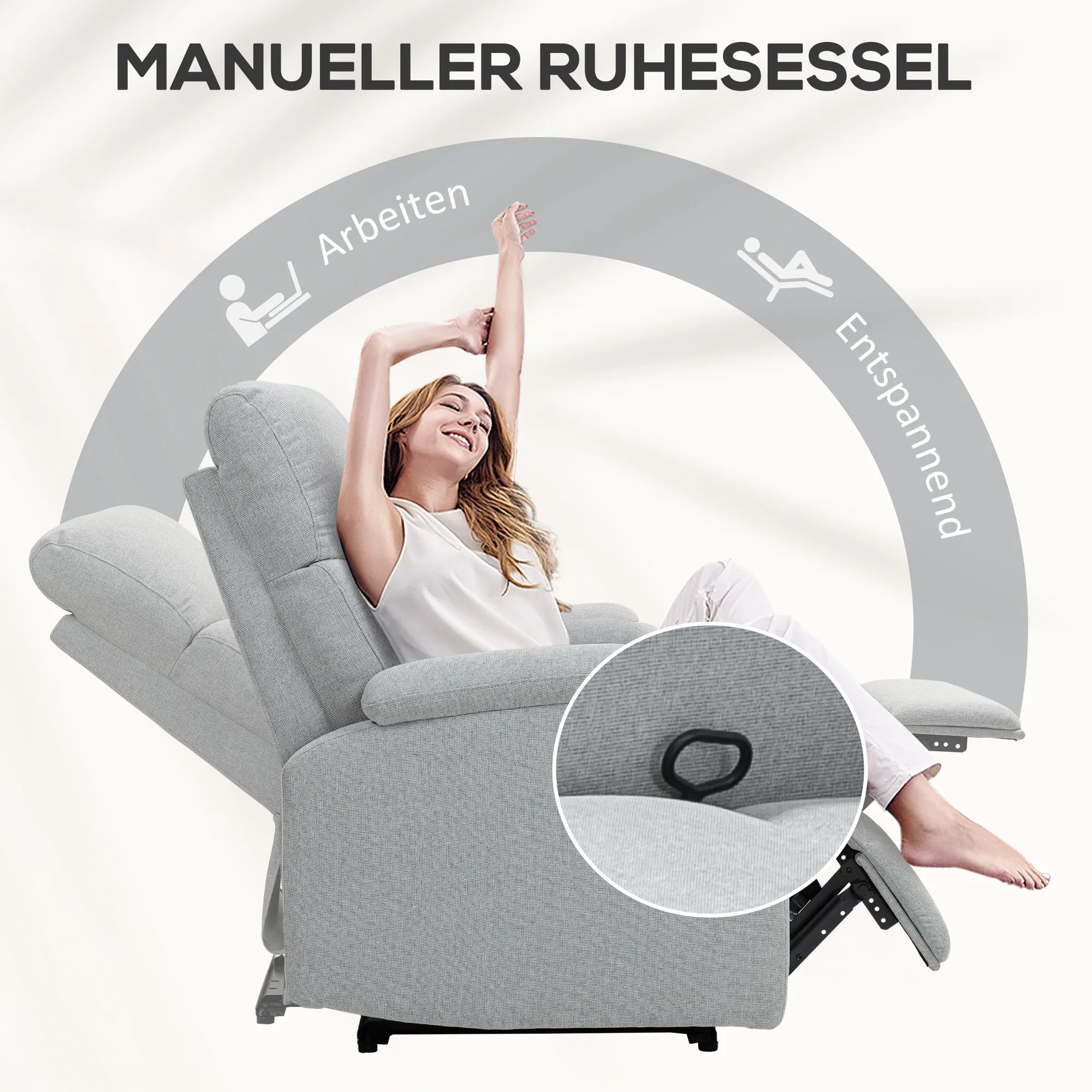 Recliner-Sessel, Entspannungssessel mit verstellbarer Rückenlehne, Fußstütze, Polstersessel für Wohnzimmer, Grau