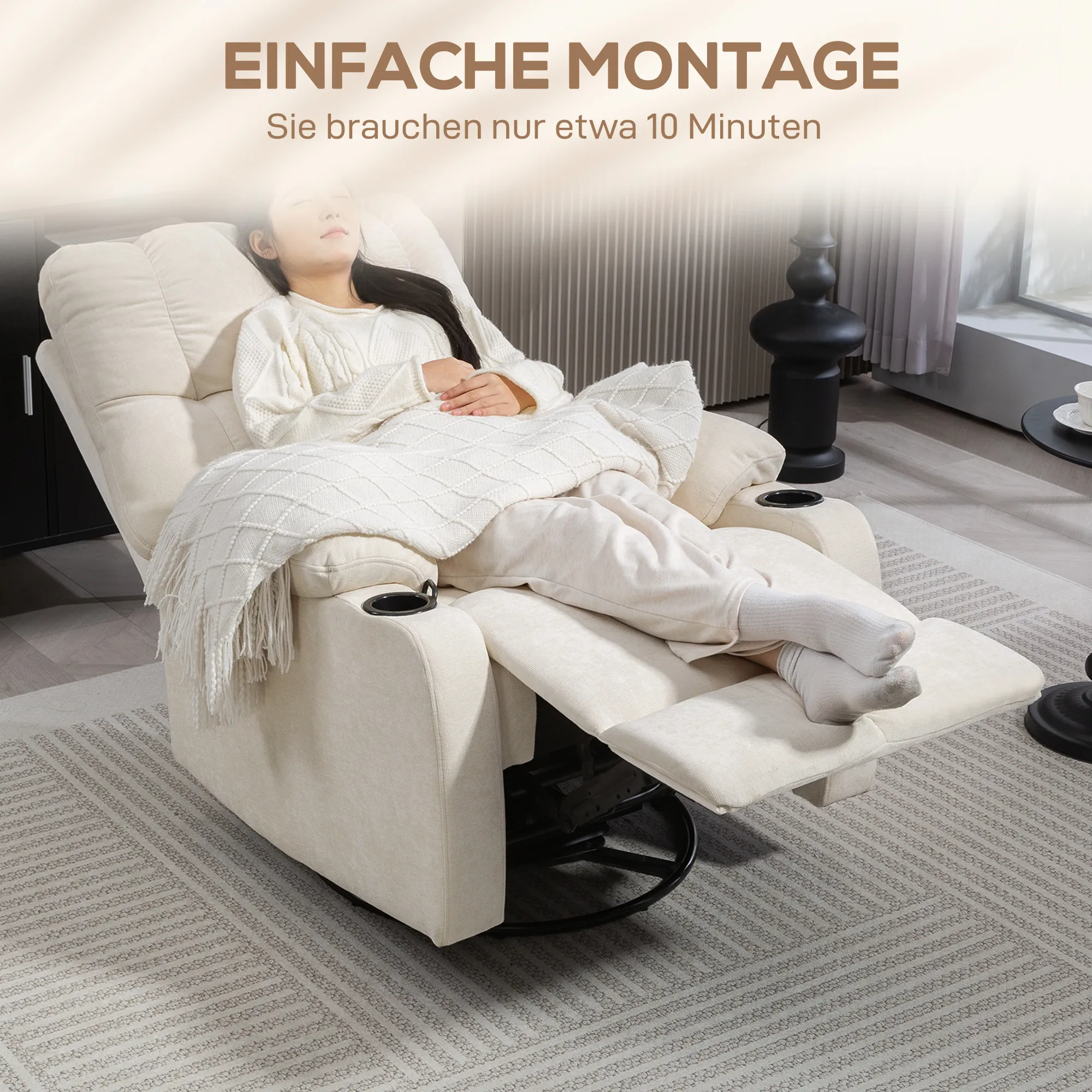 Relaxsessel mit Fußstütze, Liegesessel, drehbar, bis 150 kg, Stahlrahmen, 88x96x108cm, Beige