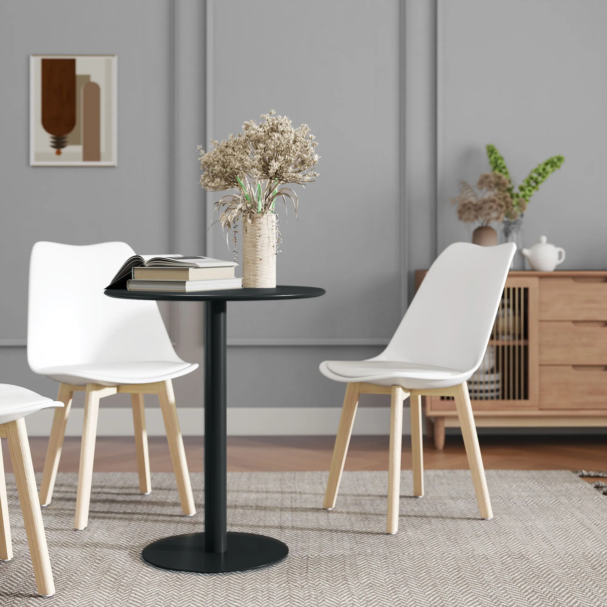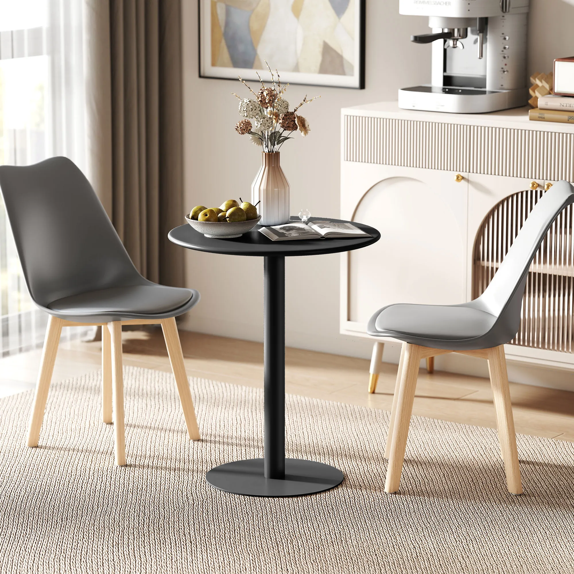 Erleben Sie kompaktes Speisen neu mit dem 2-Sitzer Esstisch. Perfekt für enge Küchen und Esszimmer, überzeugt dieser Esszimmertisch mit einer großzügigen, runden Platte, ideal für Essen und mehr. Aus vollständig pulverbeschichtetem Stahl gefertigt, garantiert er Langlebigkeit. Sein schlichter, moderner Stil fügt sich nahtlos in jede Einrichtung ein, ideal für Mahlzeiten oder als Tisch im Homeoffice.
