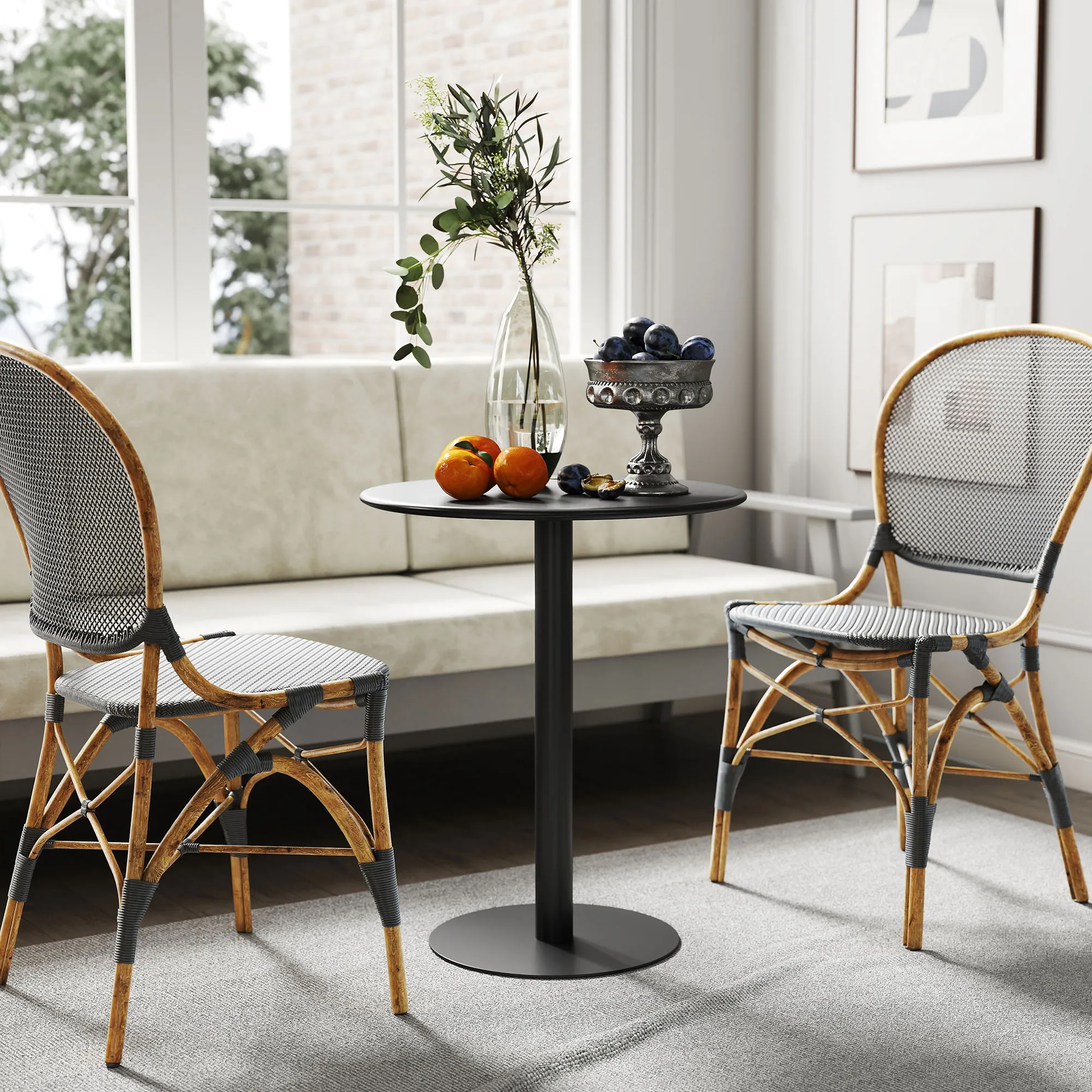 Runder Esstisch für 2 Personen, Stahl, für drinnen und draußen, Schwarz
