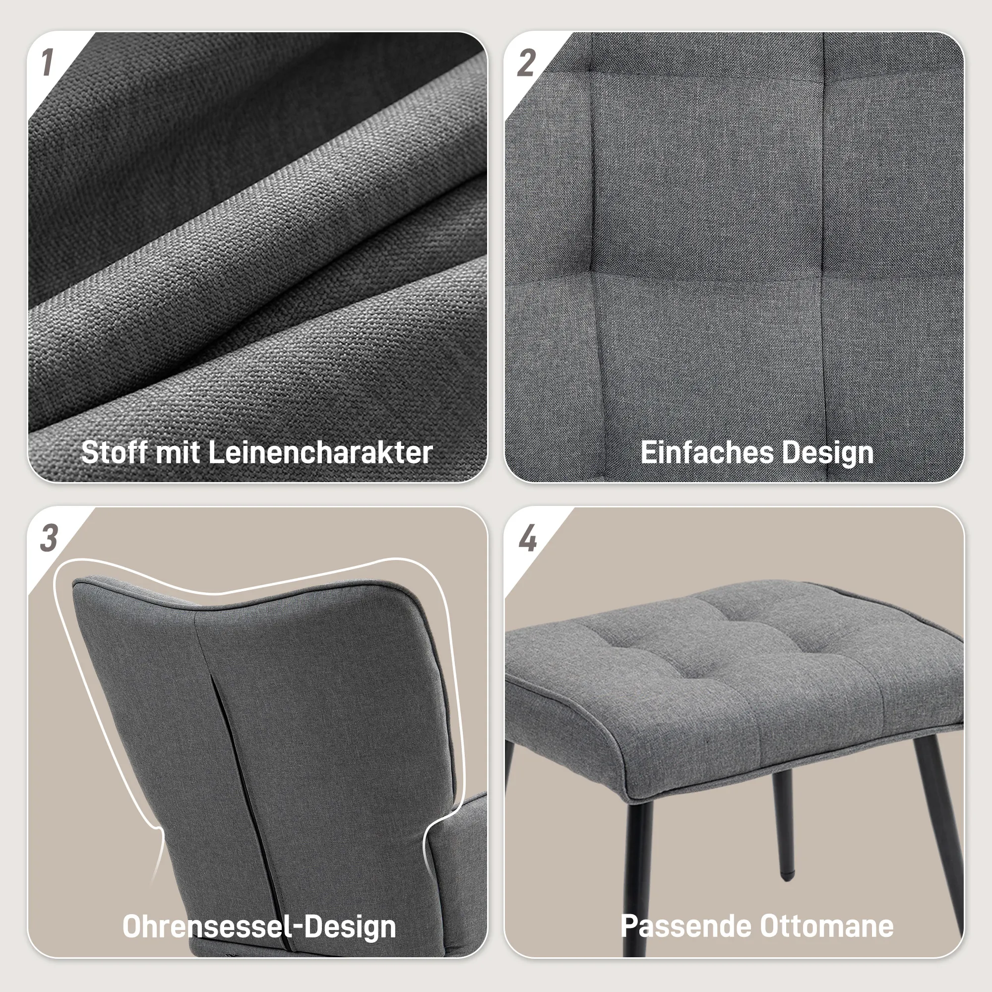Schaukelstuhl mit Hocker, komfortabel, bis 130 kg, Leinenoptik, 64x89x90cm, Dunkelgrau