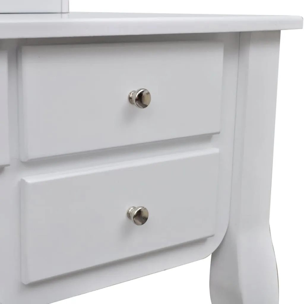 Schminktisch mit Spiegel und Hocker 7 Schubladen Weiß