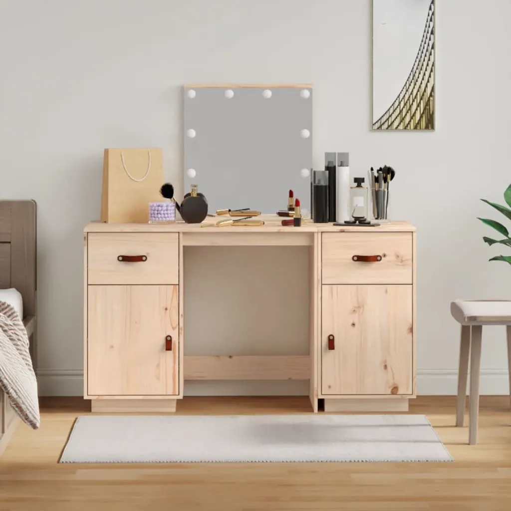 Schminktisch-Set mit LED Massivholz Kiefer
