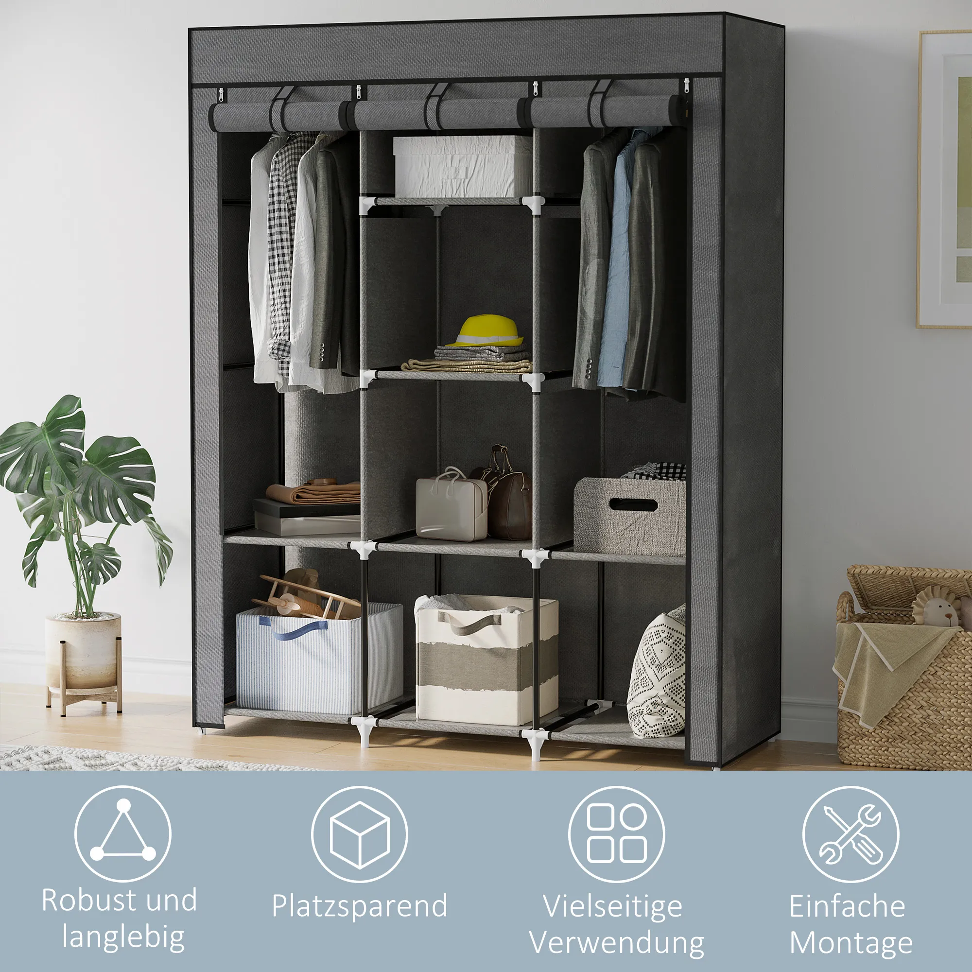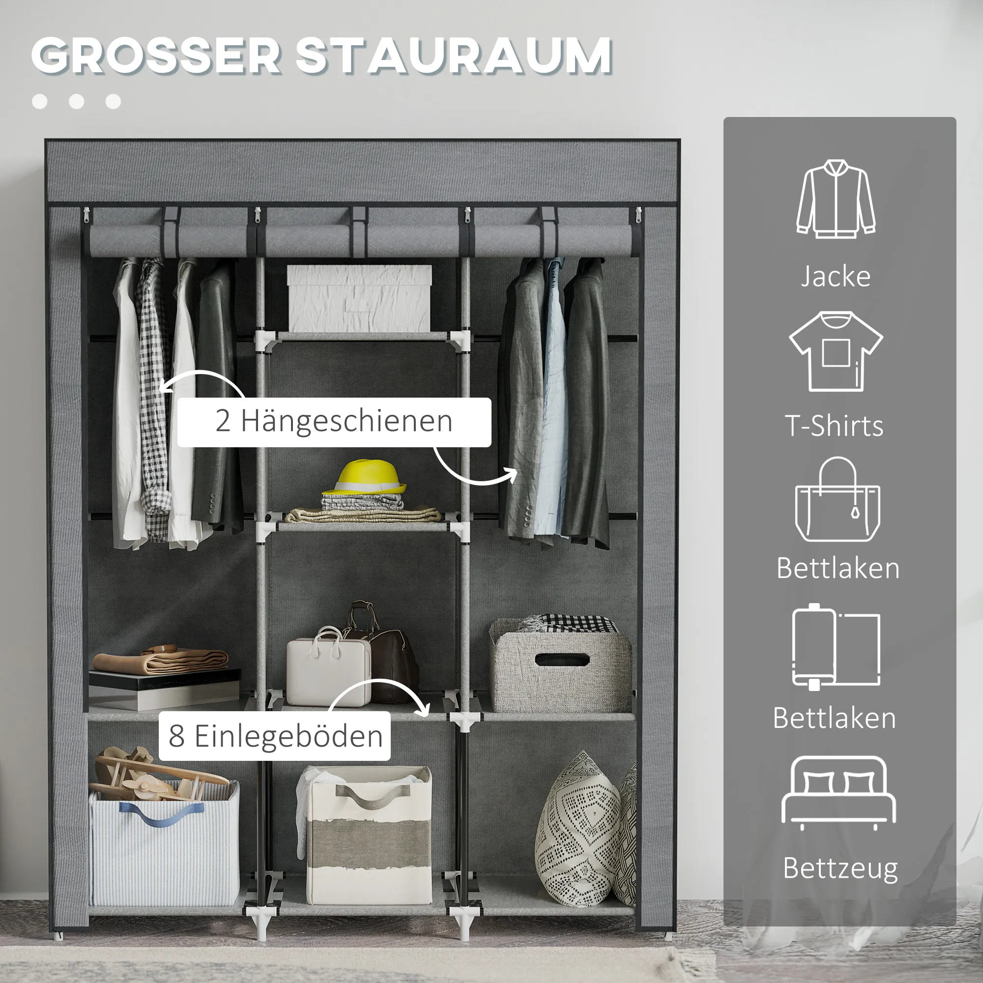 Schrank aus Stoff, Aufbewahrungslösung, 8 Regale, 2 Kleiderstangen, Dunkelgrau