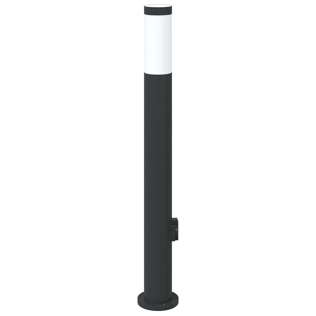 Schwarze Edelstahl Pollerleuchte 11x80 cm mit integrierter Steckdose