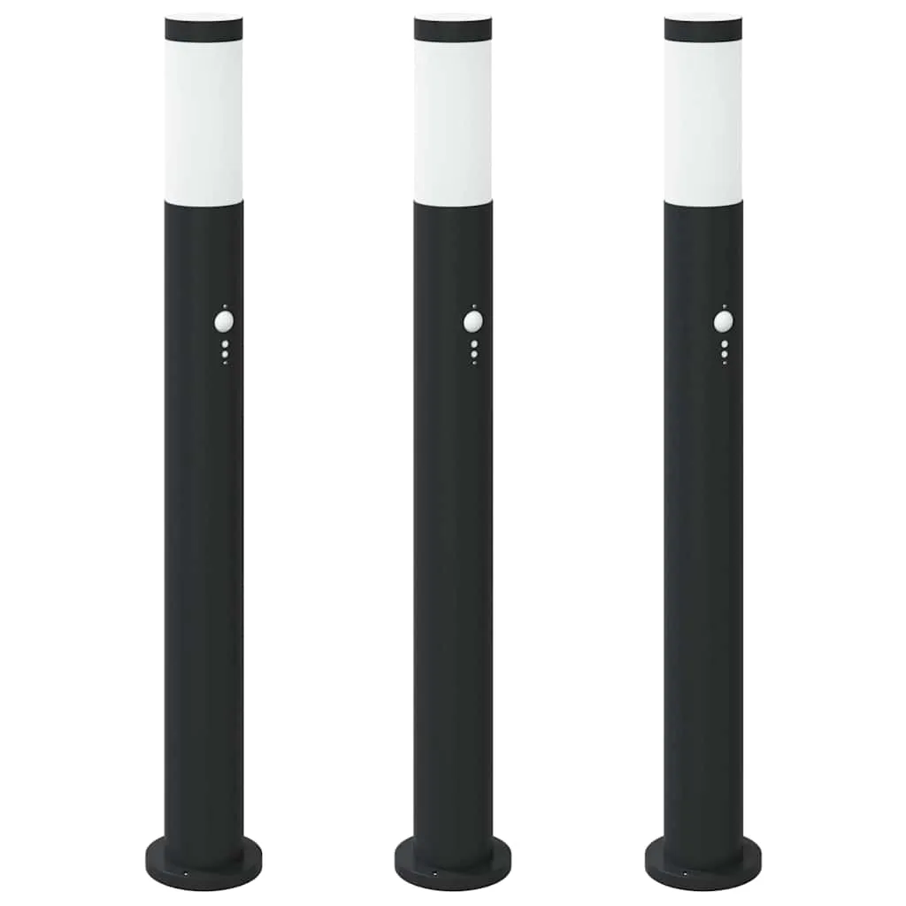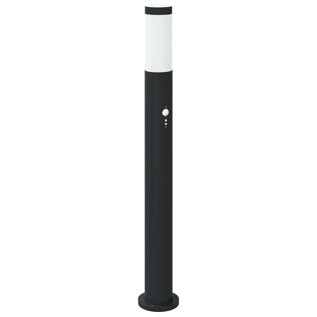 Schwarze Edelstahl Pollerleuchte 11x80 cm mit PIR-Bewegungssensor