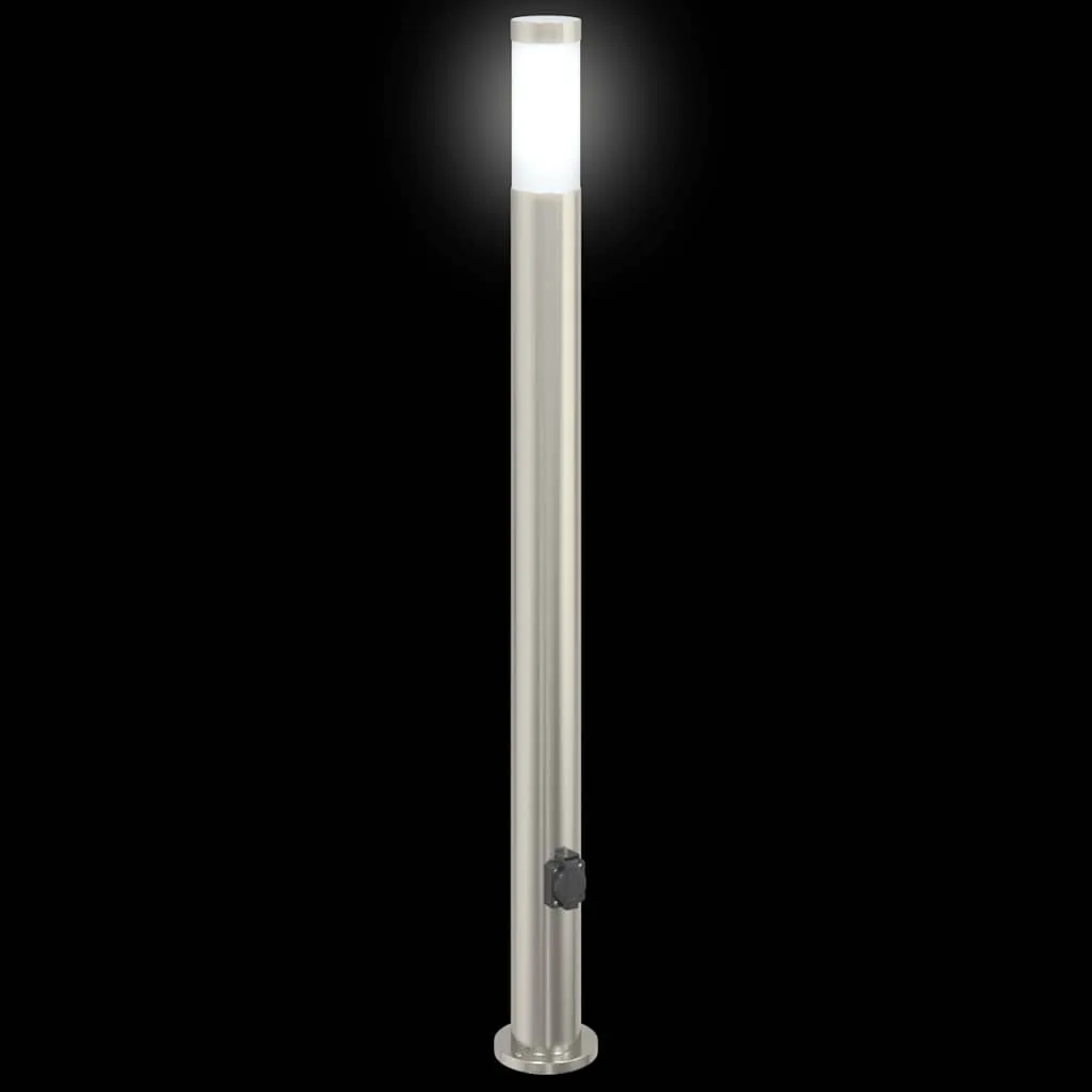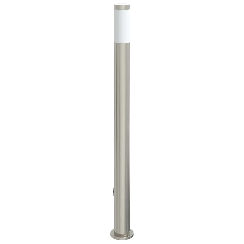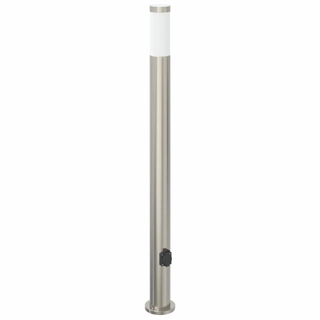 Silberne Pollerleuchte aus Edelstahl 11x110 cm mit Steckdose und IP44