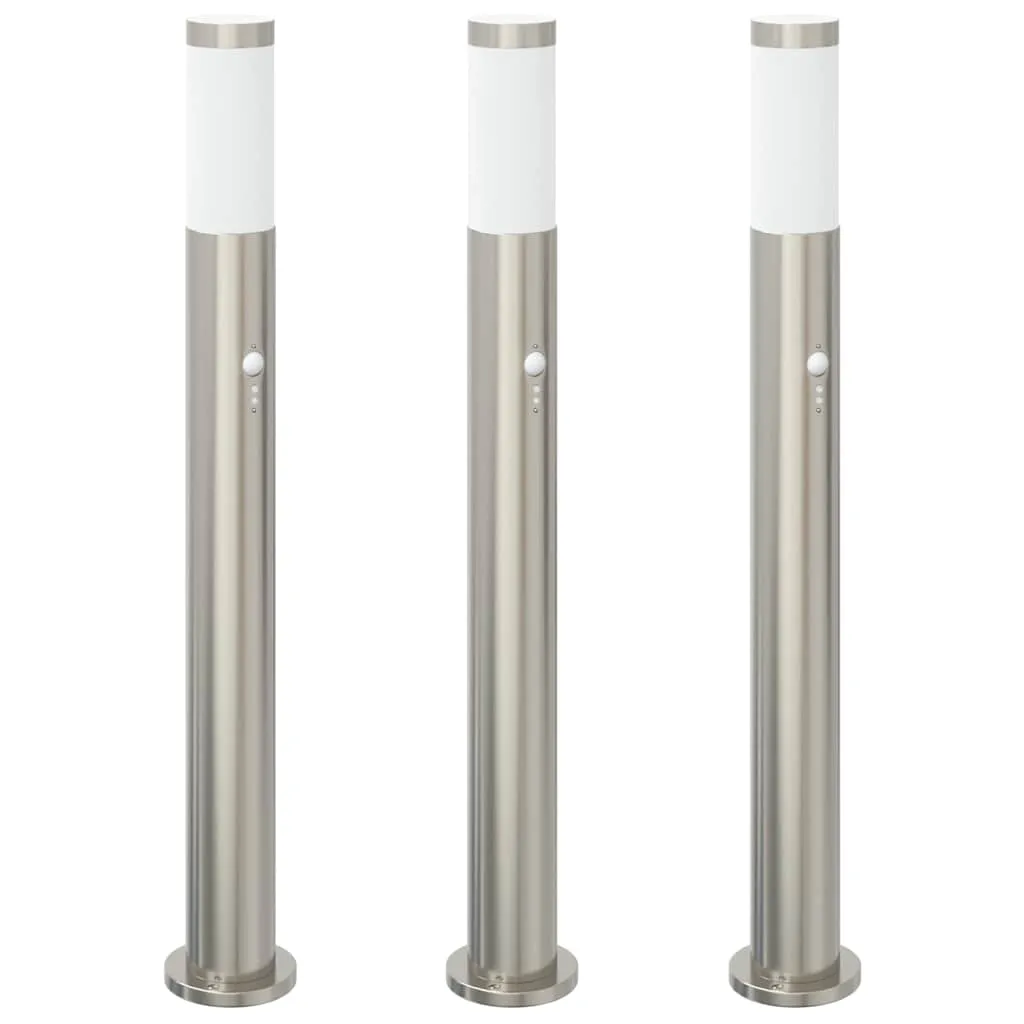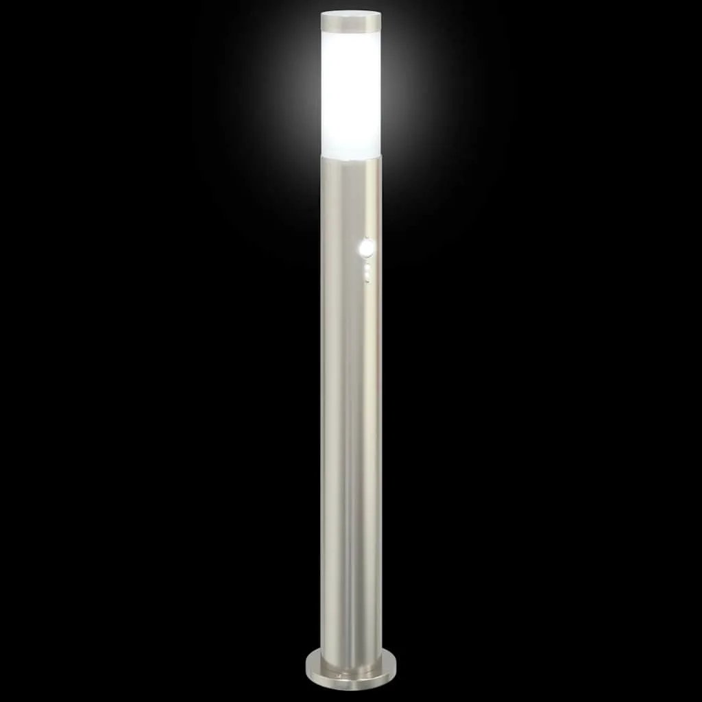 Silberne Pollerleuchte aus Edelstahl 11x80 cm mit Bewegungssensor
