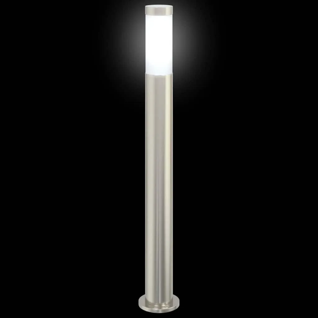 Silberne Pollerleuchte aus Edelstahl 11x80 cm mit IP44 Schutz
