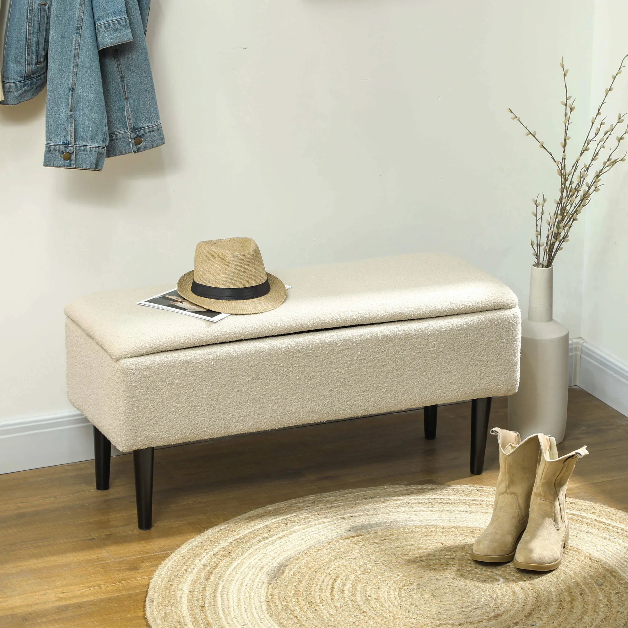 Sitzbank im Vintagedesign, Schuhbank, versteckter Stauraum, Kaschmir-Optik, Beige + Schwarz