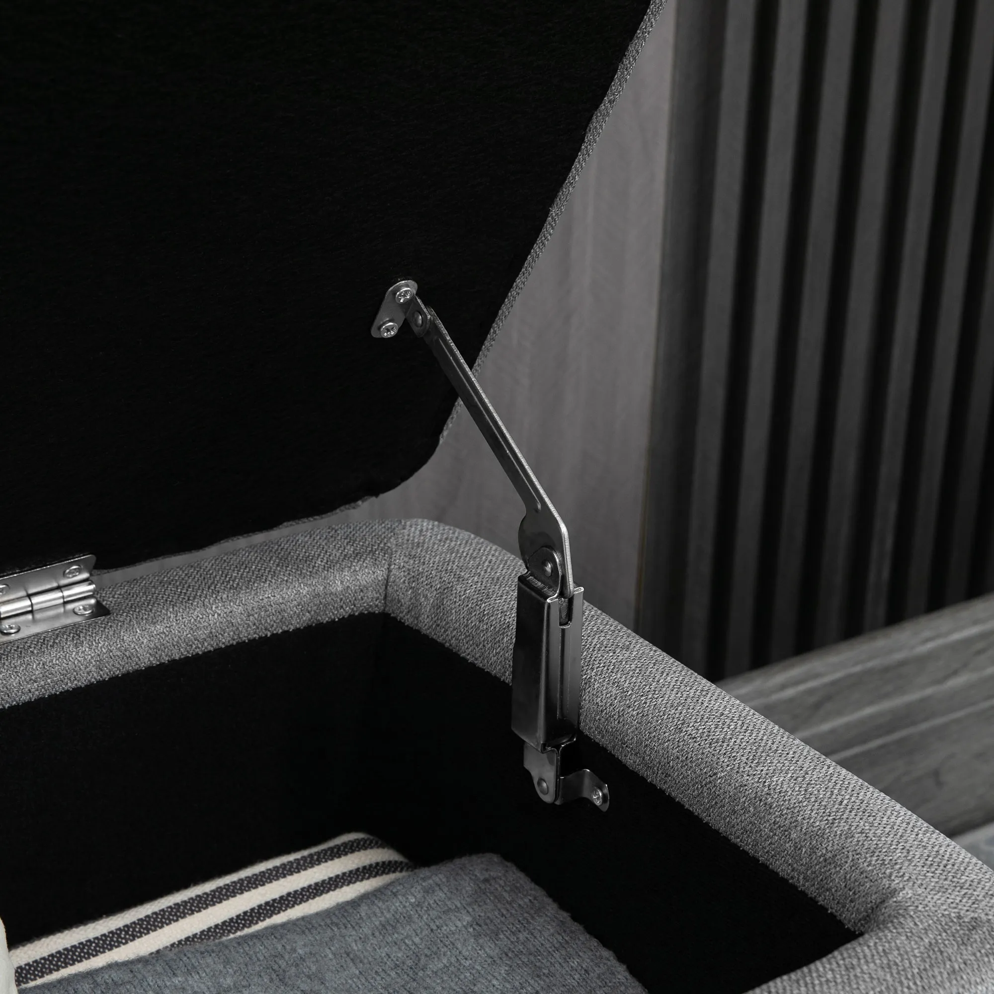 - Klappdeckel mit Scharnierdesign der Polsterbank ist praktisch für den täglichen Gebrauch