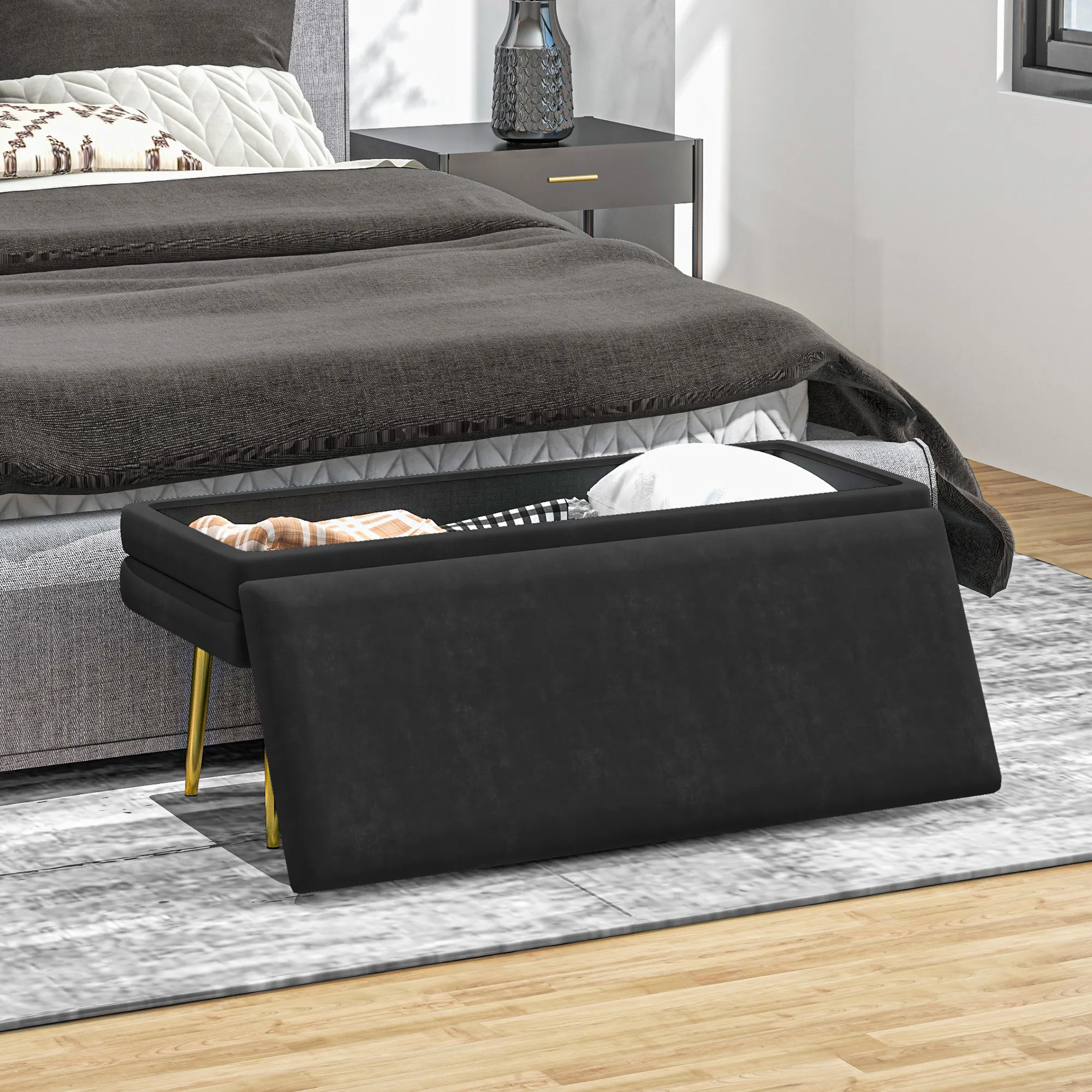 Sitzbank Polsterbank, mit Stauraum, Stahl, 100 cm x 37,5 cm x 42 cm, Schwarz