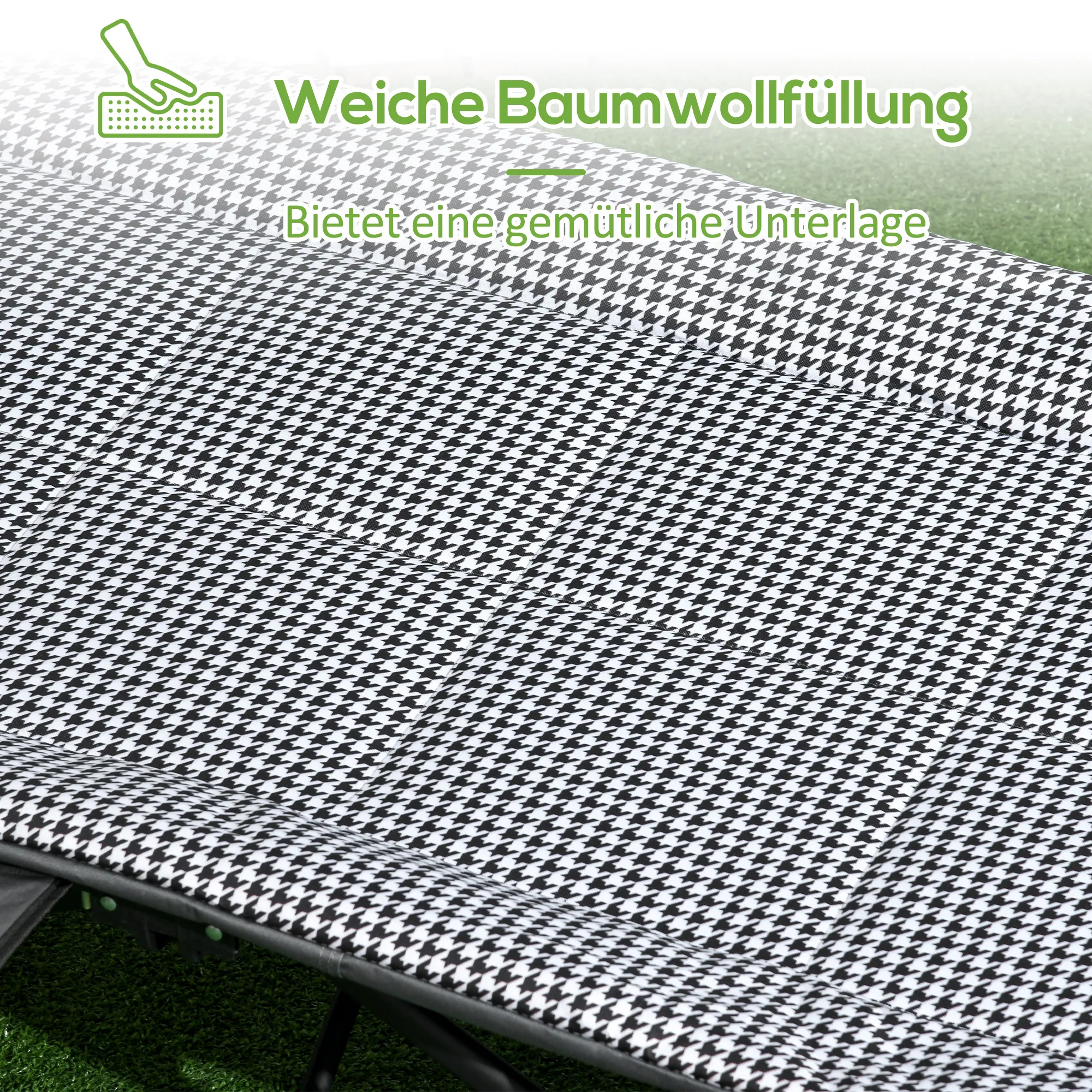 Sonnenliege, klappbar, 1 Seitentasche, 1 Getränkehalter, 68 cm x 186 cm x 48 cm, Schwarz + Weiß