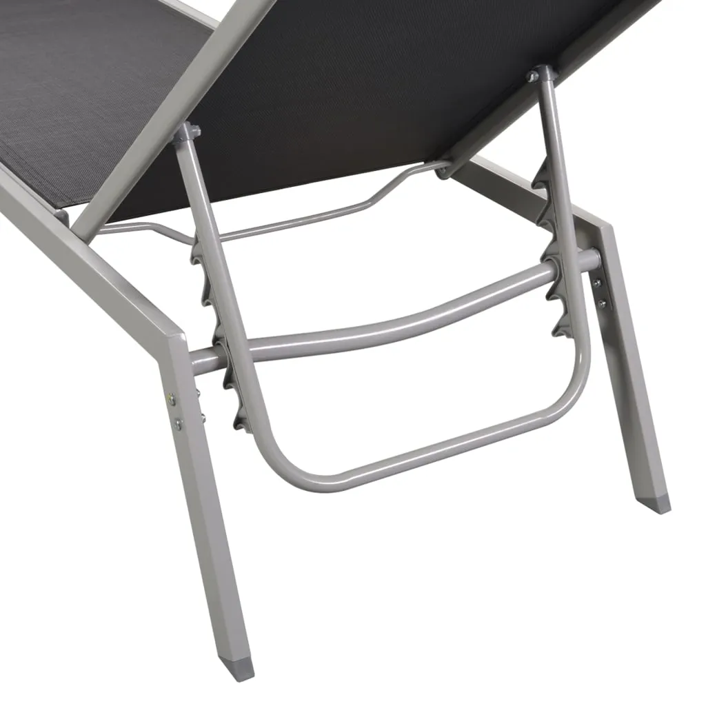 Sonnenliegen 2 Stk. mit Tisch Stahl und Textilene Schwarz