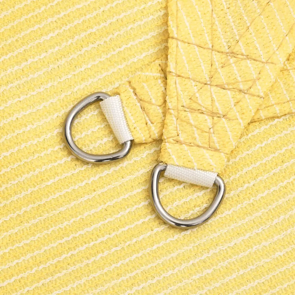 Schaffen Sie überall Schatten, wo Sie möchten, mit unserem hochwertigen HDPE-Sonnenschutz. Es ist der ideale Sonnenschutz, der in verschiedenen Außenbereichen wie Ihrem Garten, Ihrer Terrasse, Ihrem Spielplatz oder Balkon verwendet werden kann. Hergestellt aus 100 % HDPE (hochdichtes Polyethylen), schützt das Sonnensegel vor direkter Sonneneinstrahlung, ist jedoch wind- und wasserdurchlässig. Das HDPE ist speziell behandelt, sodass es schimmel- und UV-beständig ist. Das Sonnensegel lässt sich dank der Edelstahlschnallen an jeder Ecke und der mitgelieferten Seile leicht montieren. Gut zu wissen: Für die richtige Verwendung dieses Produkts sind kompatible Haken (nicht enthalten) erforderlich. Um die richtige Passform sicherzustellen, beachten Sie bitte die Gesamtlänge der Haken und des Produkts beim Kauf.