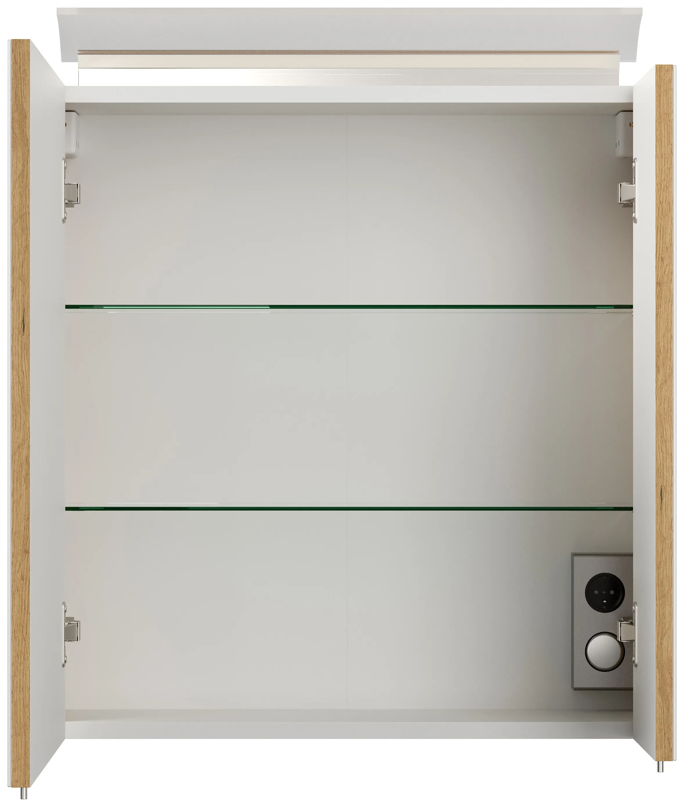 Spiegelschrank 60cm inkl. Design LED-Lampe und Glasböden eiche gold