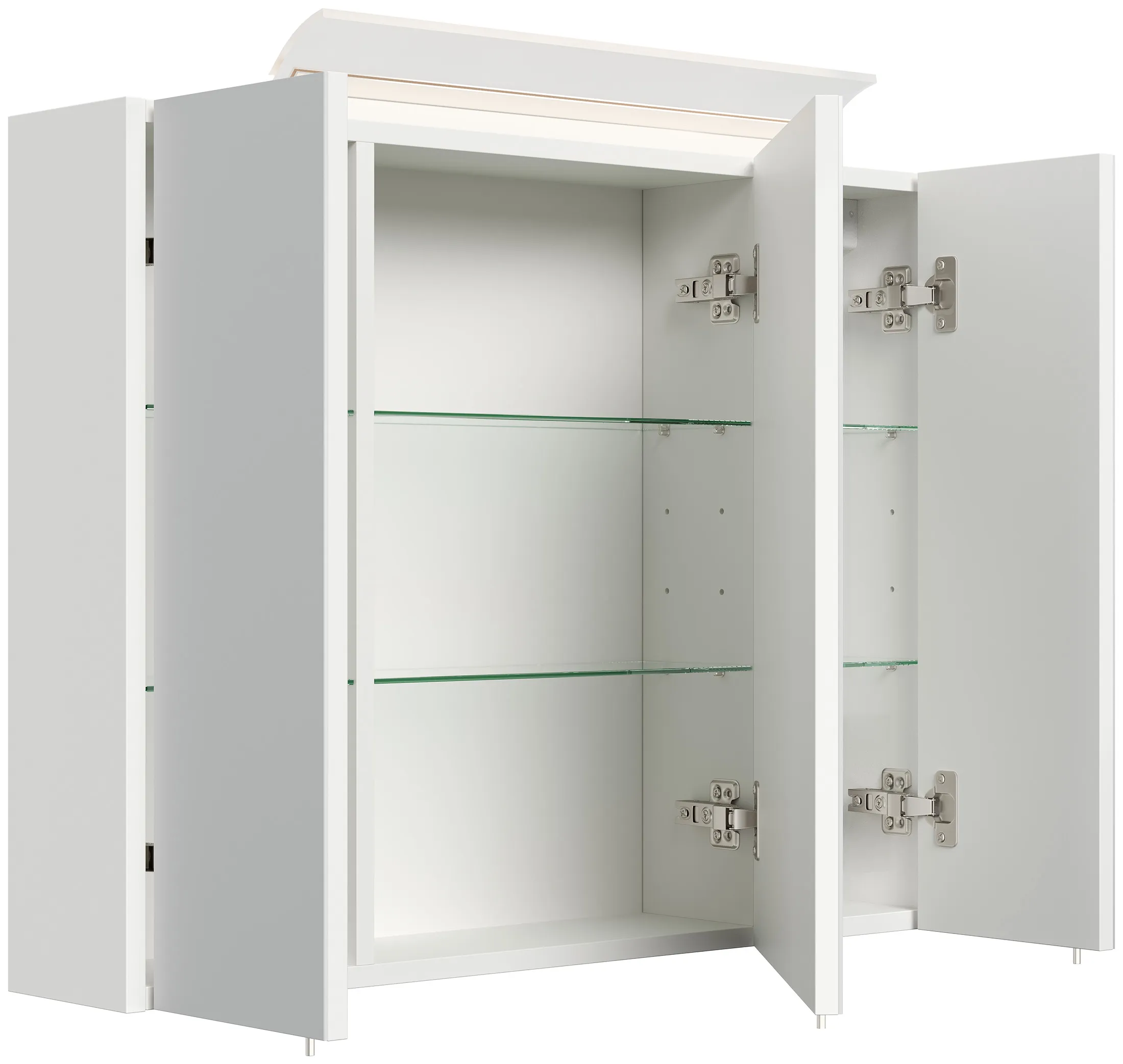 Spiegelschrank 80cm inkl. Design LED-Lampe und Glasböden weiss hochglanz
