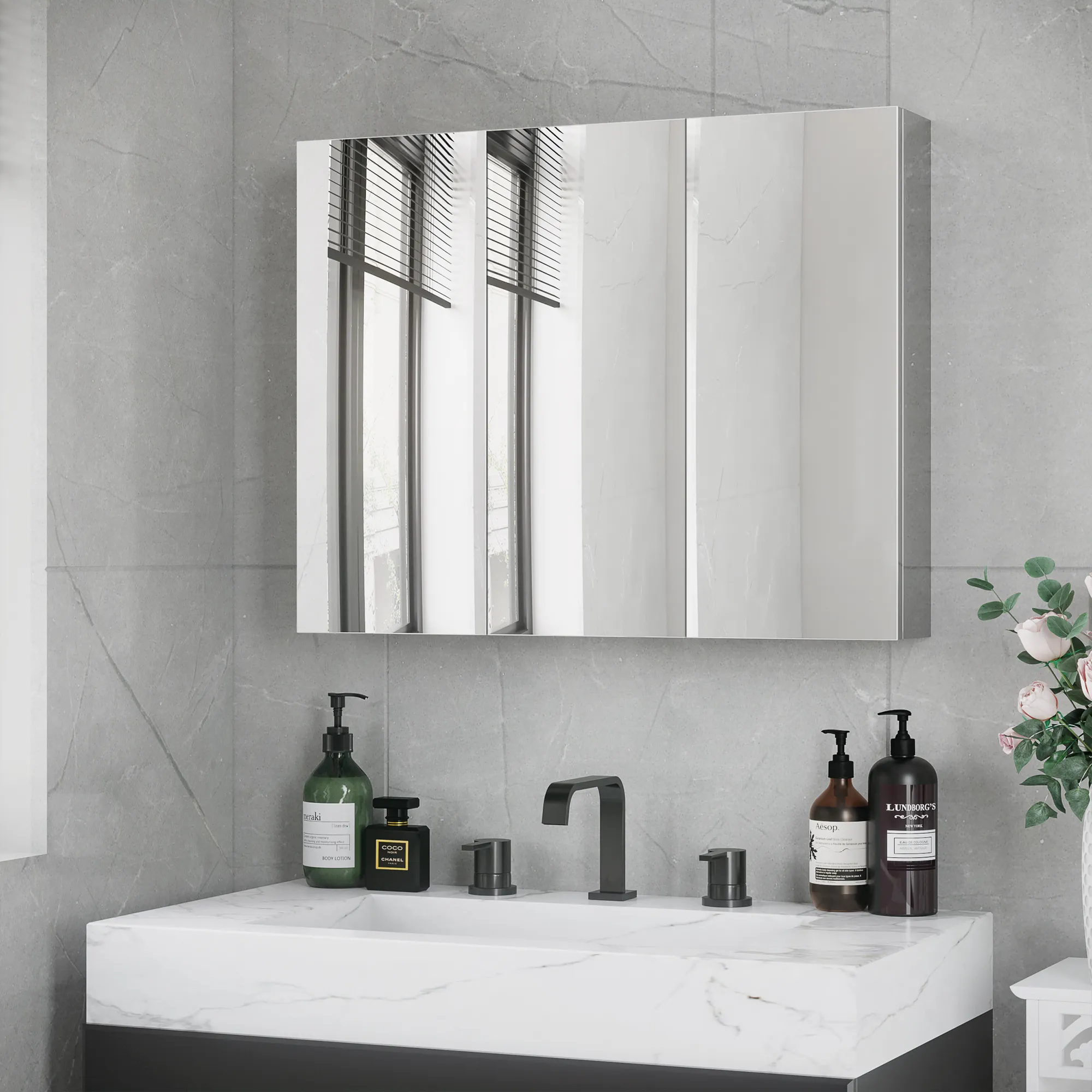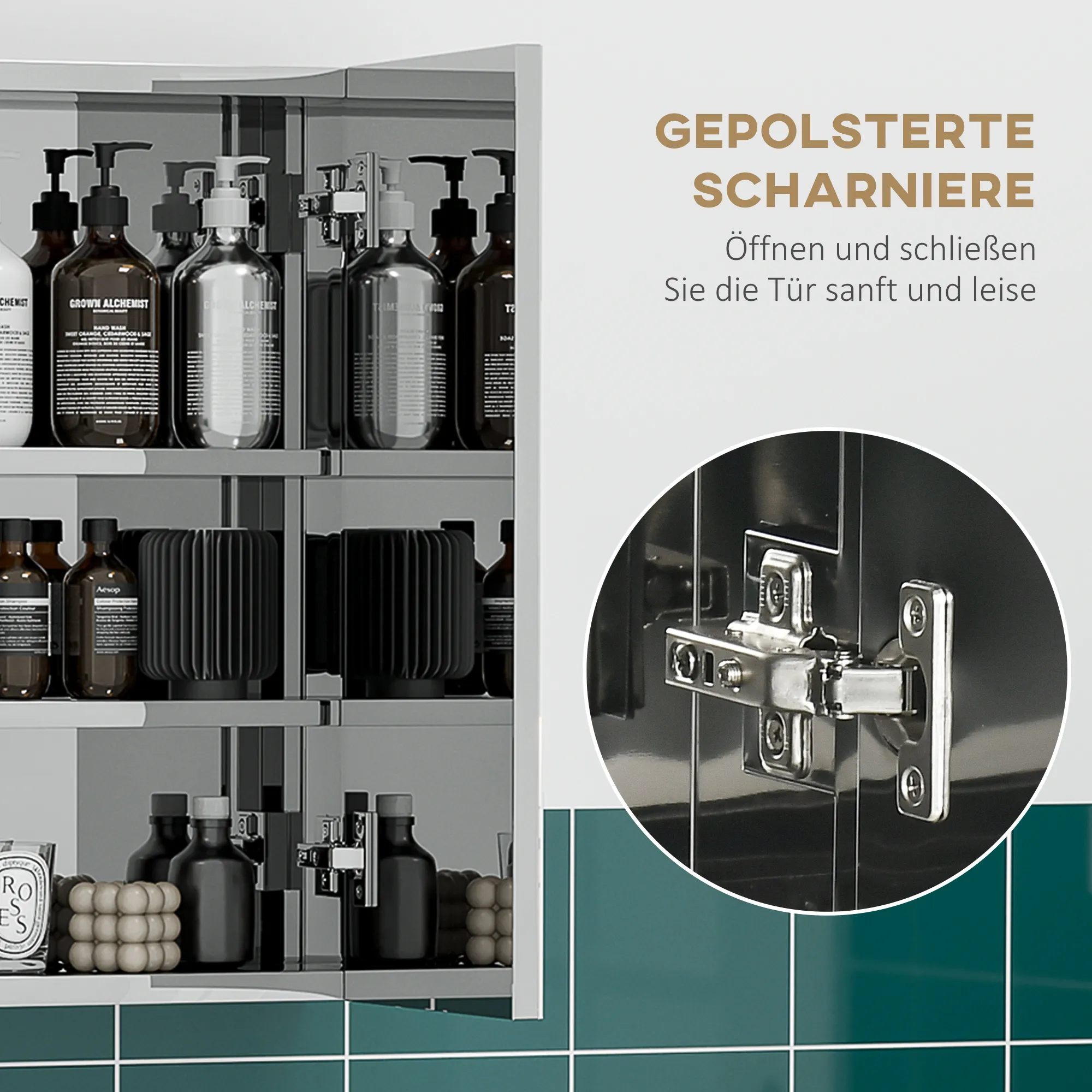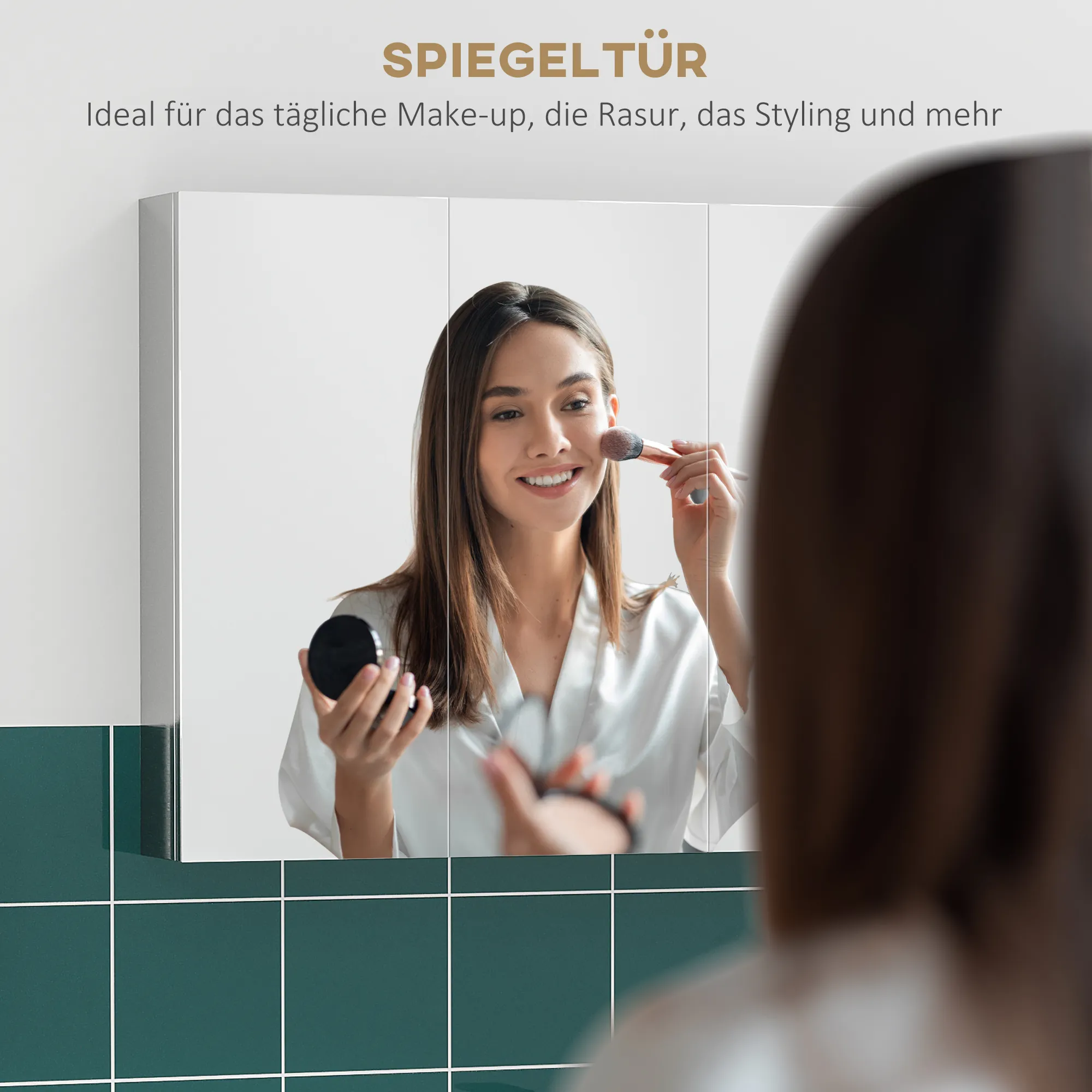 Spiegelschrank, Badschrank, 3 Spiegeltüren, 5 Innenböden, Edelstahl, Farbe: Silber, 70 x 12 x 55 cm
