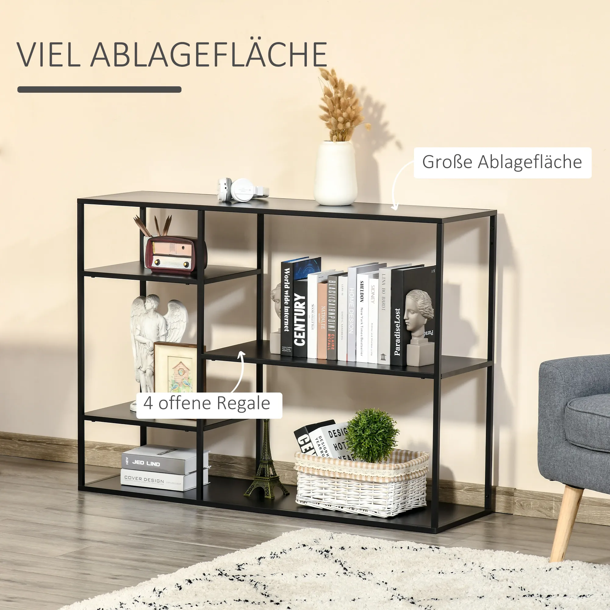 Beschreibung:- Mit 4 offenen Regalen und einer geräumigen Ablagefläche, die viel Stauraum bietet